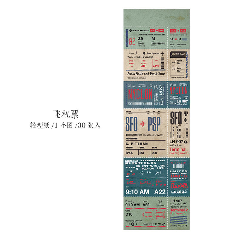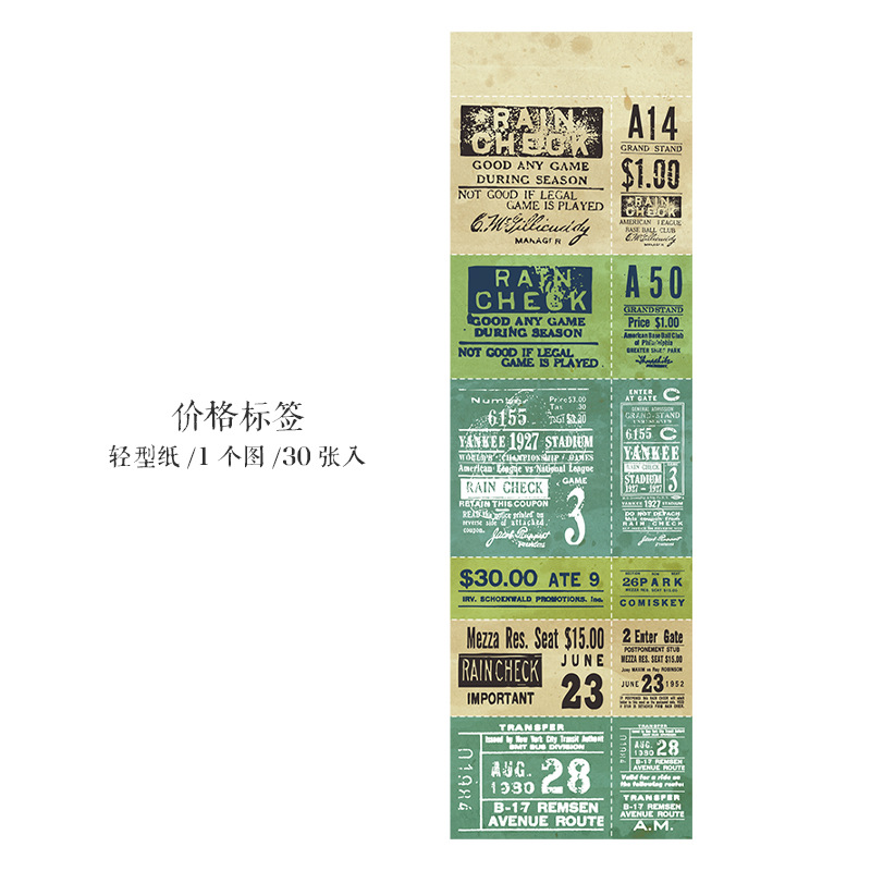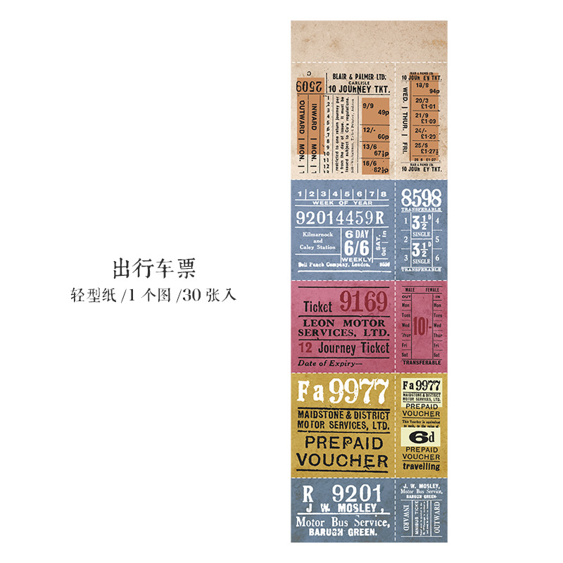 复古长票本《票务长廊》系列 30张轻型纸可撕便签 8款