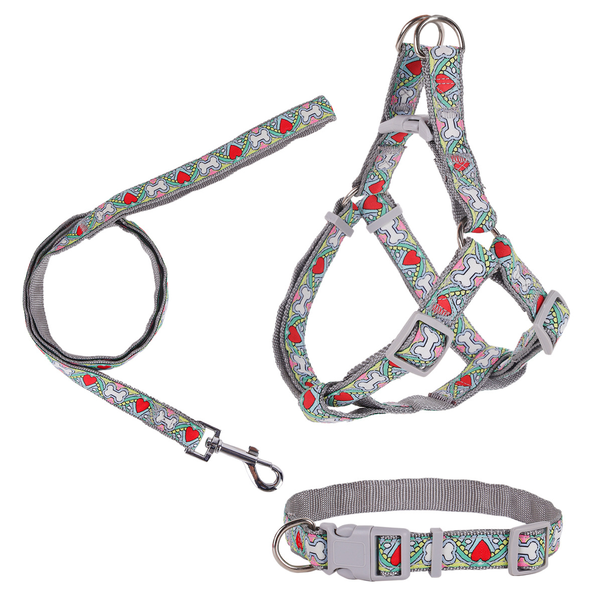 跨境宠物玩具夏日印花宠物胸背外出狗牵引绳防丢狗绳中型犬狗项圈