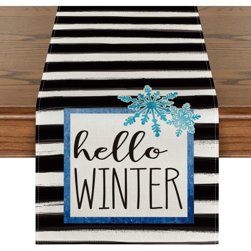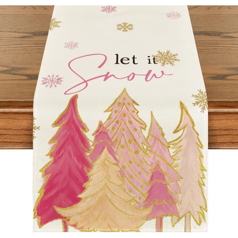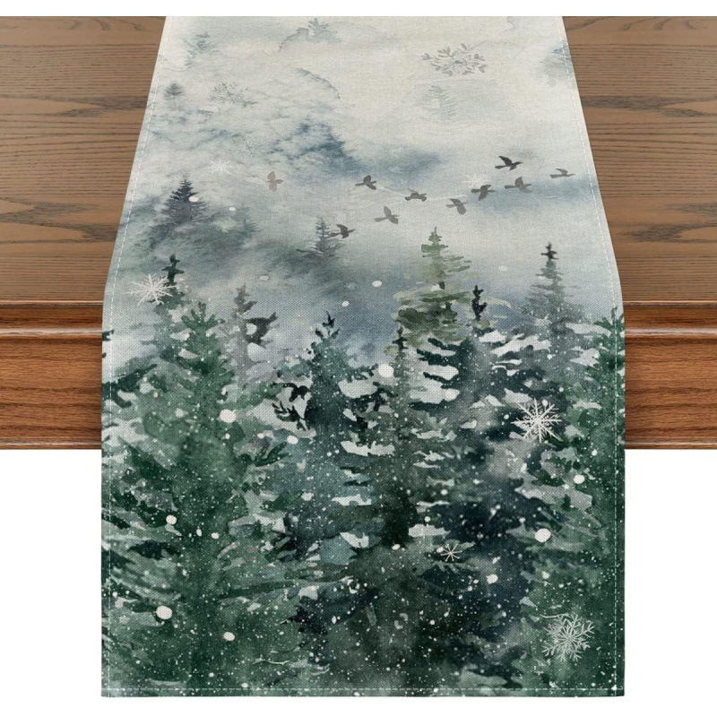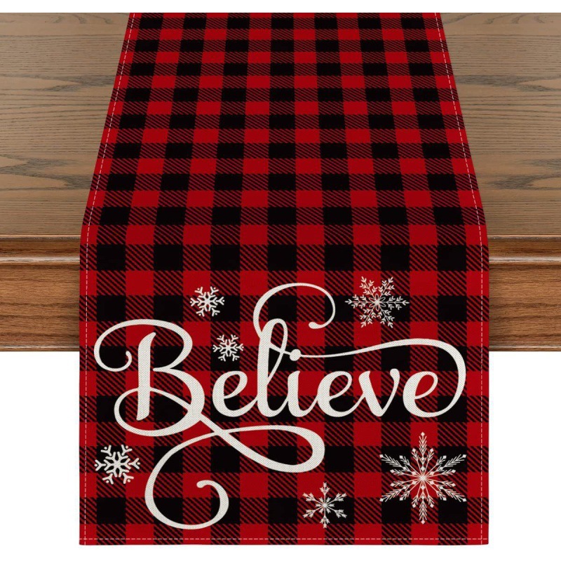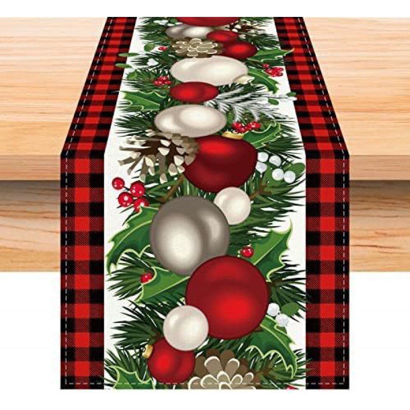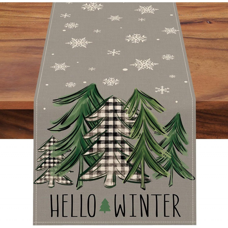 新款跨境圣诞节装饰,圣诞树桌旗亚麻耐用结实餐桌布跨境专供桌布