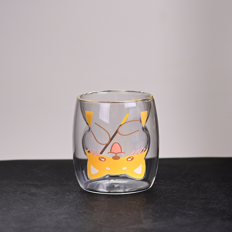批发新款高硼硅玻璃水杯高颜值带把杯子家用动物喝水玻璃杯子创意