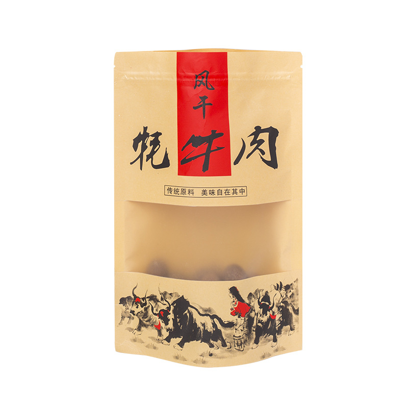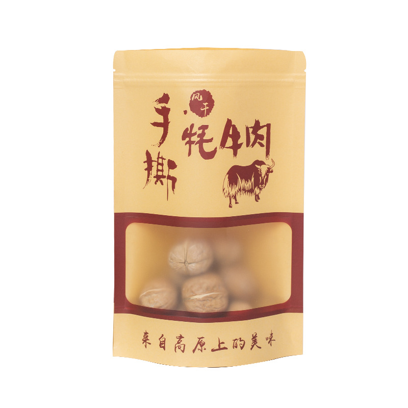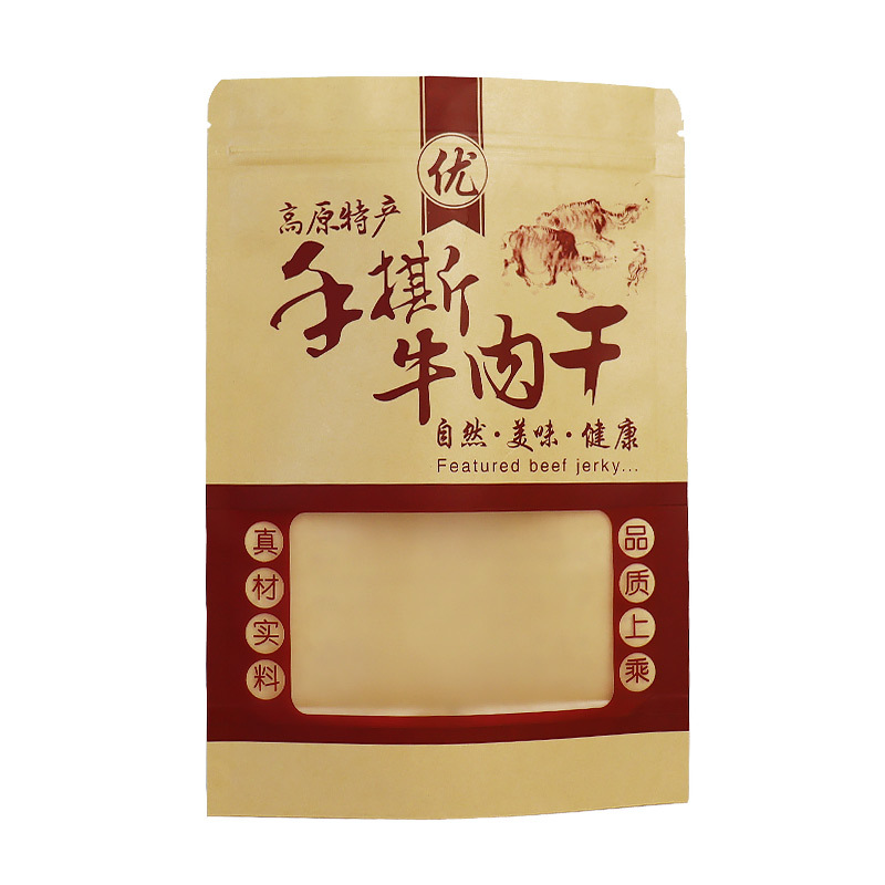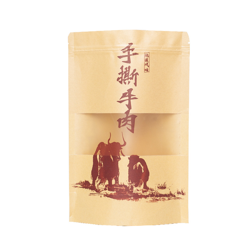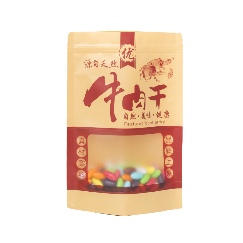 食品自立自封拉链密封风干手撕牛肉干包装袋现货通用开窗牛皮纸袋