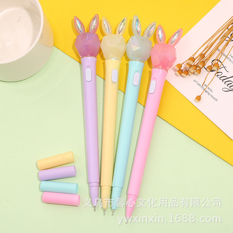 可爱卡通网红兔头中性笔个性创意文具水笔黑色签字笔发光学可开关