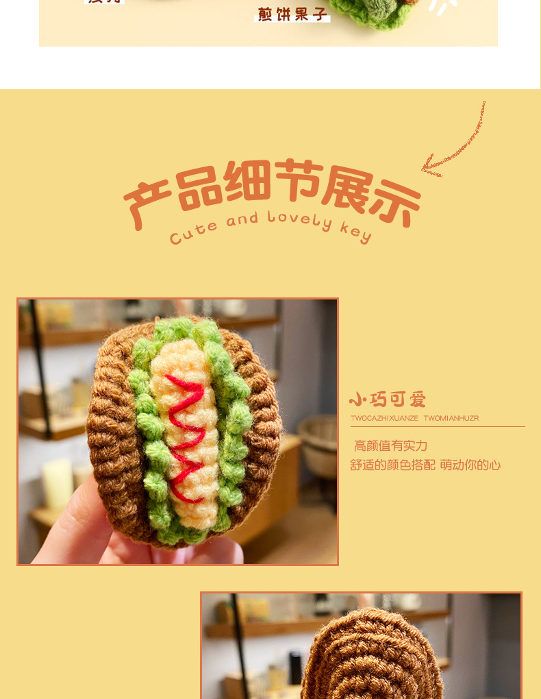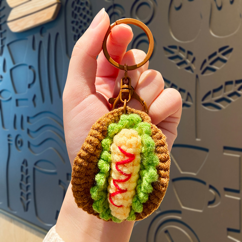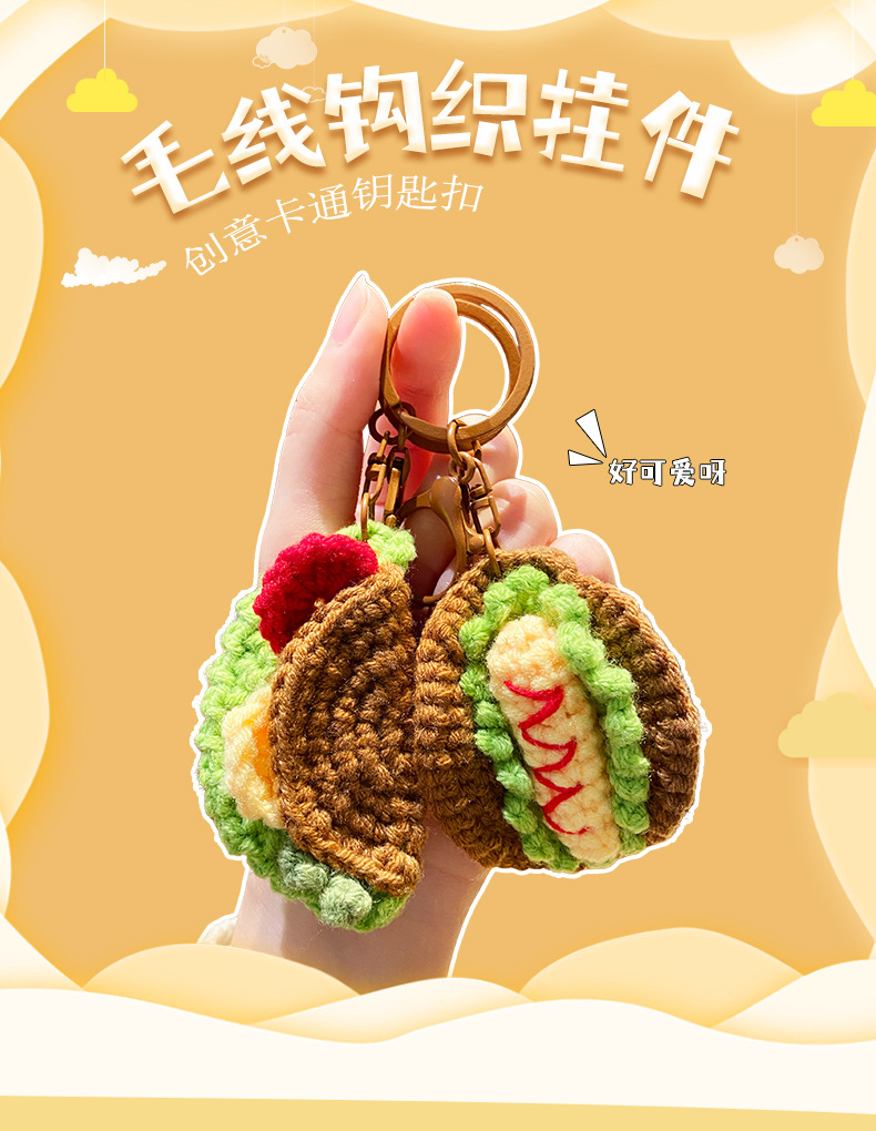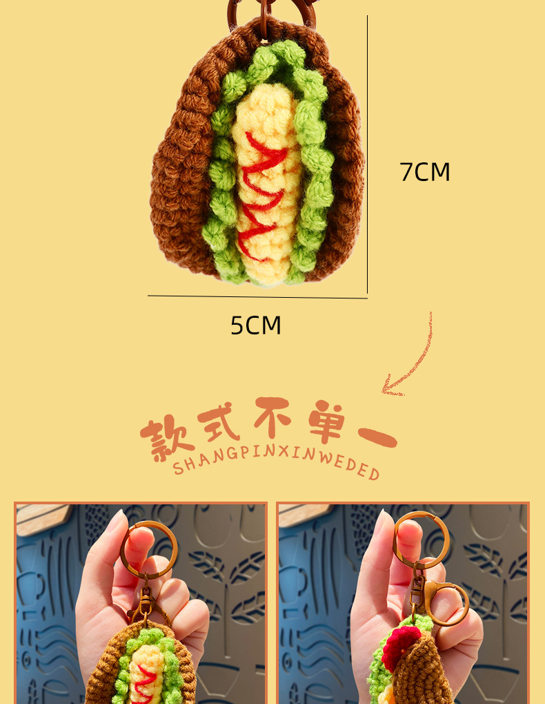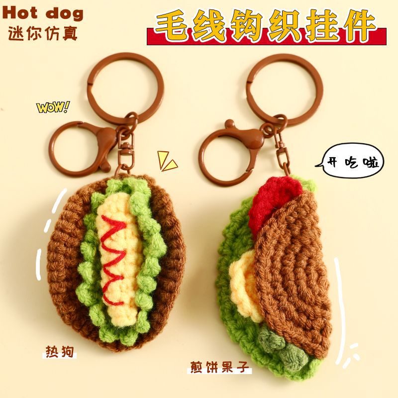 毛线钩织挂件-热狗,毛线钩织挂件-煎饼果