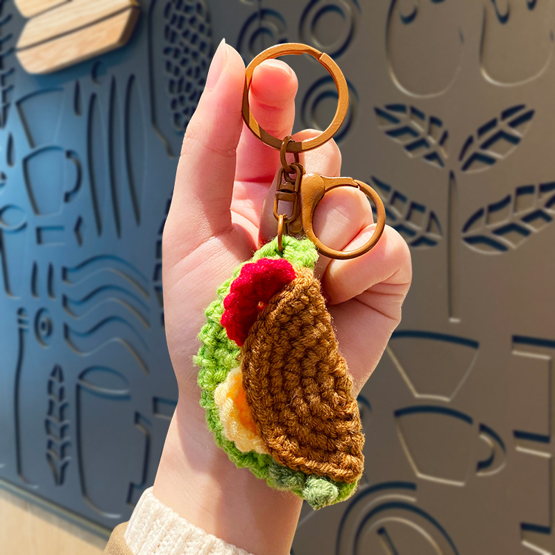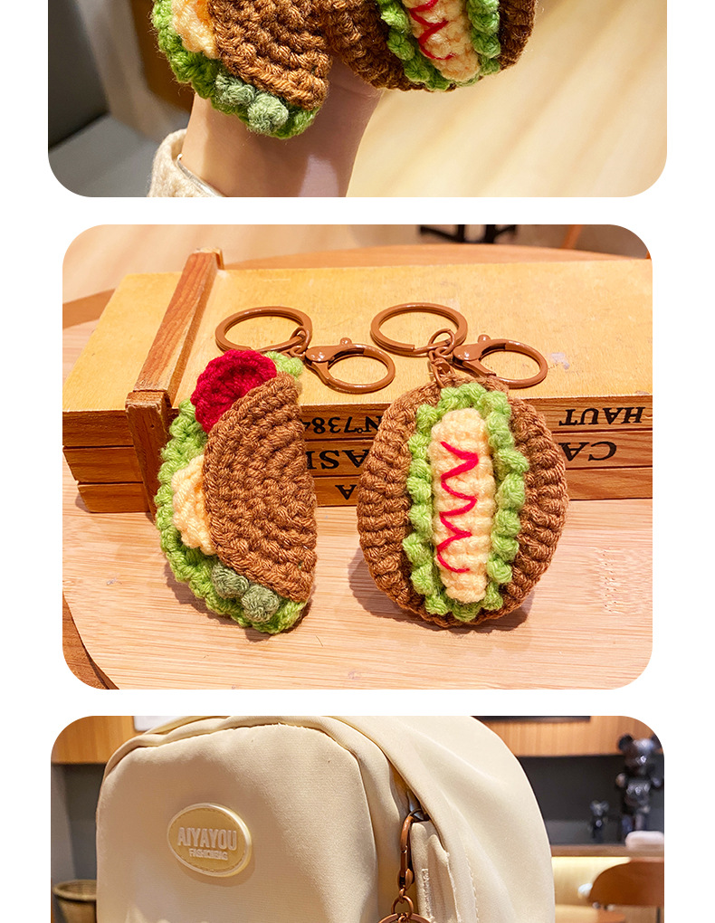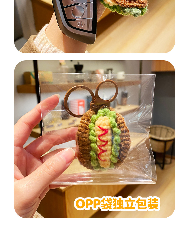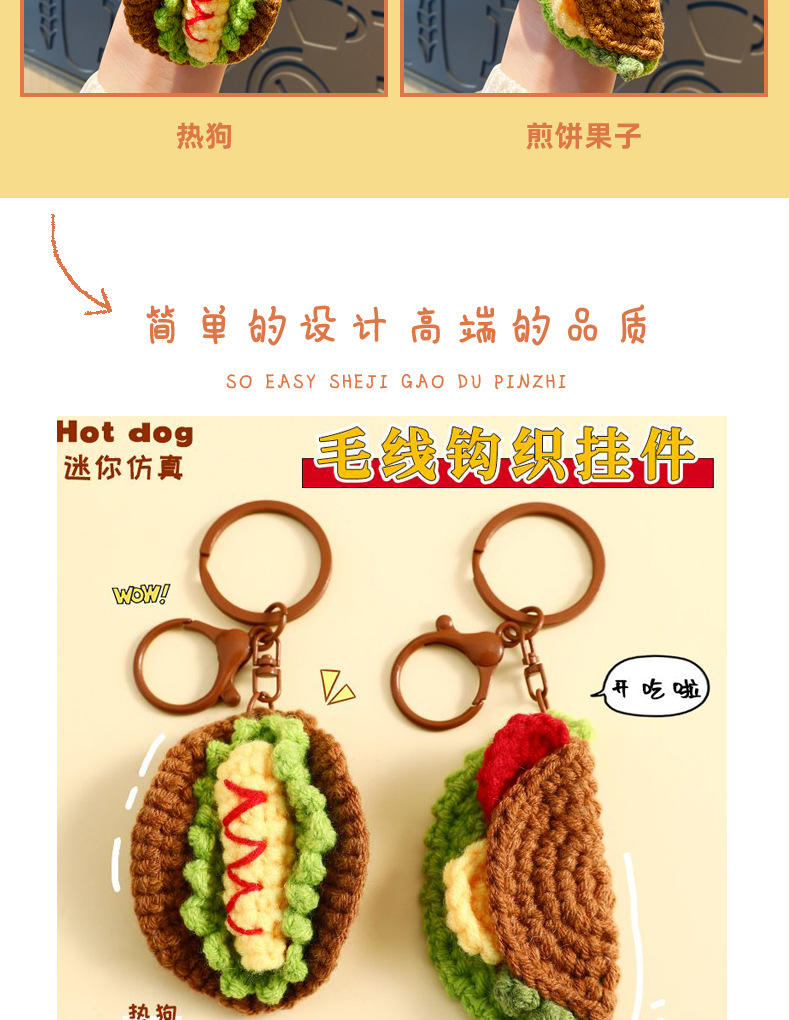 毛线钩织挂件-热狗,毛线钩织挂件-煎饼果