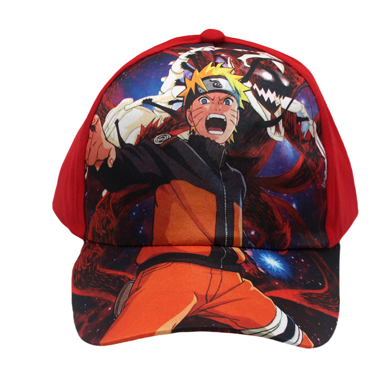 跨境儿童帽子动漫卡通蜘蛛侠龙珠火影印花棒球帽外贸史迪仔鸭舌帽