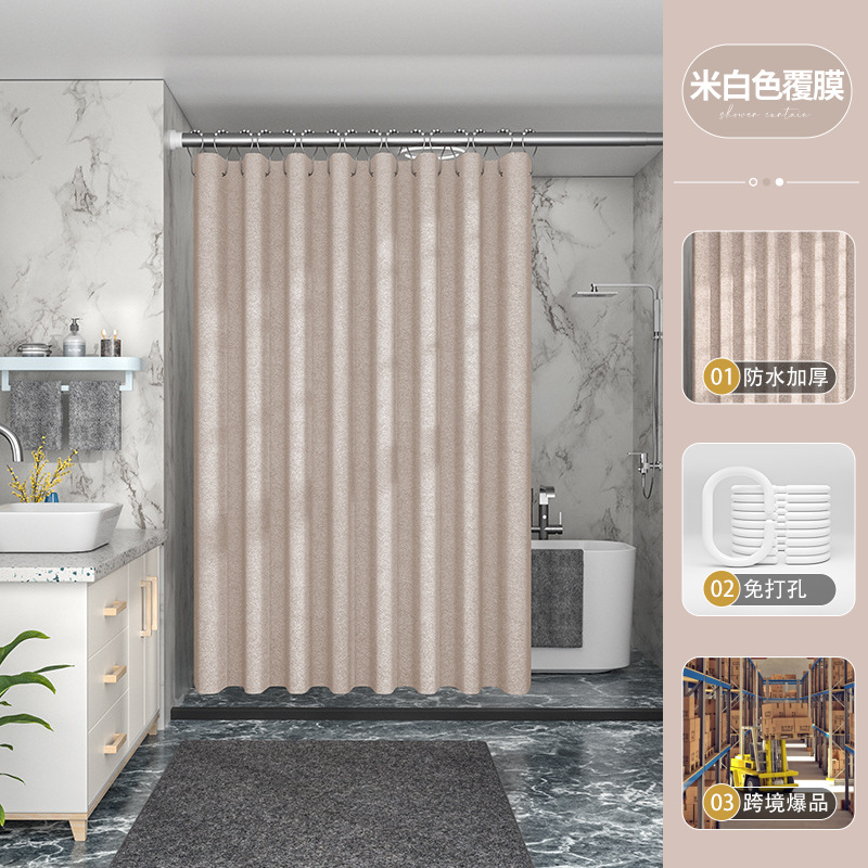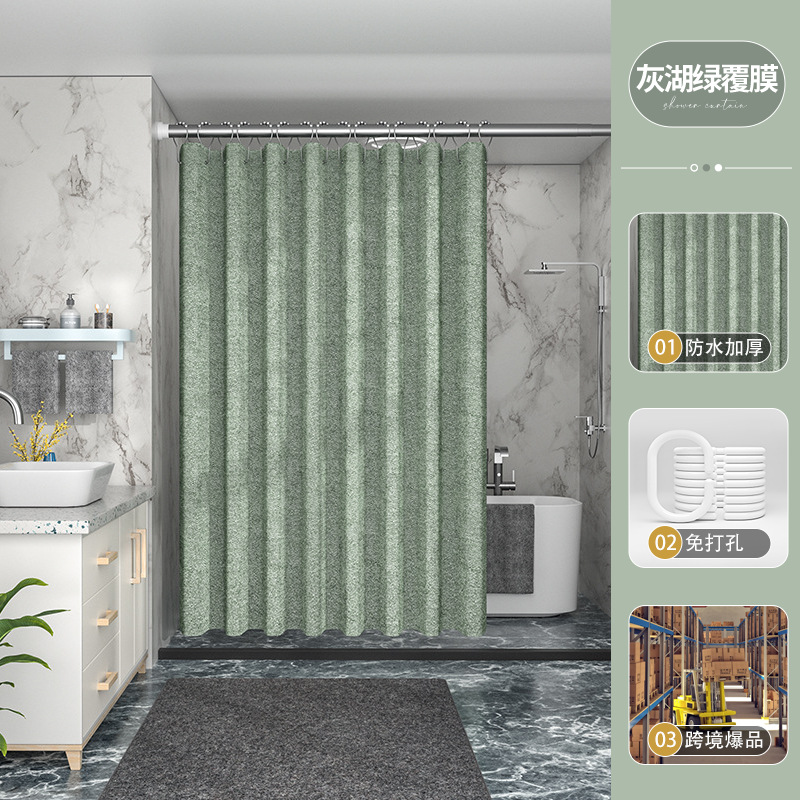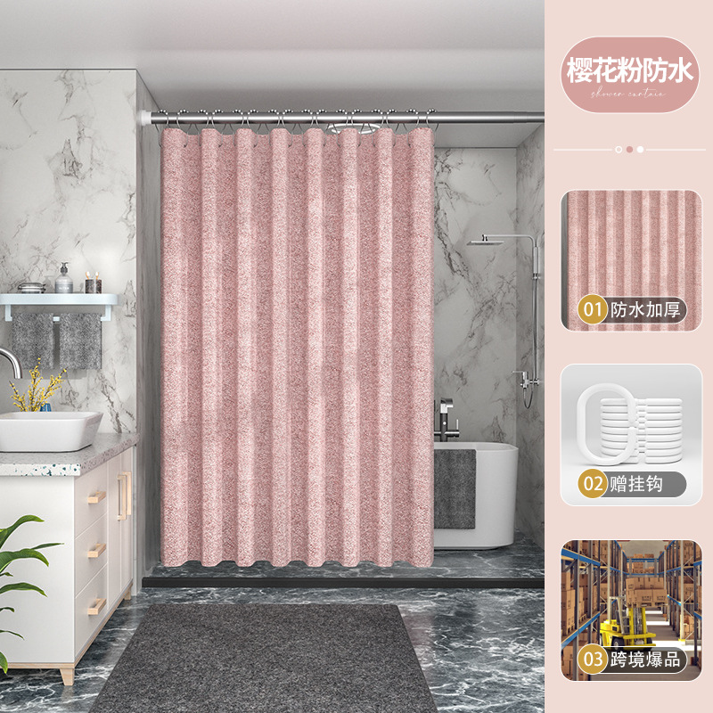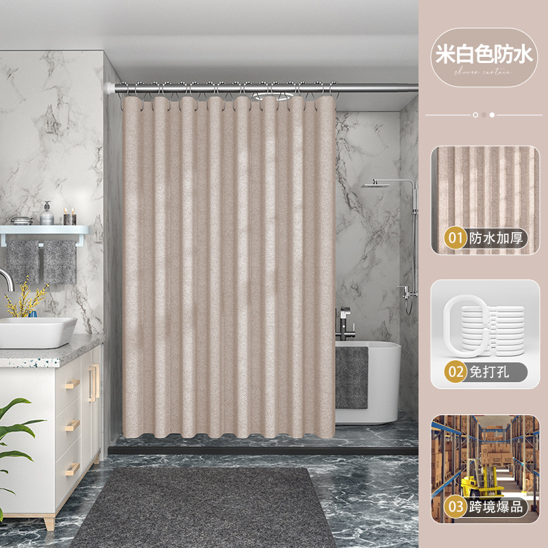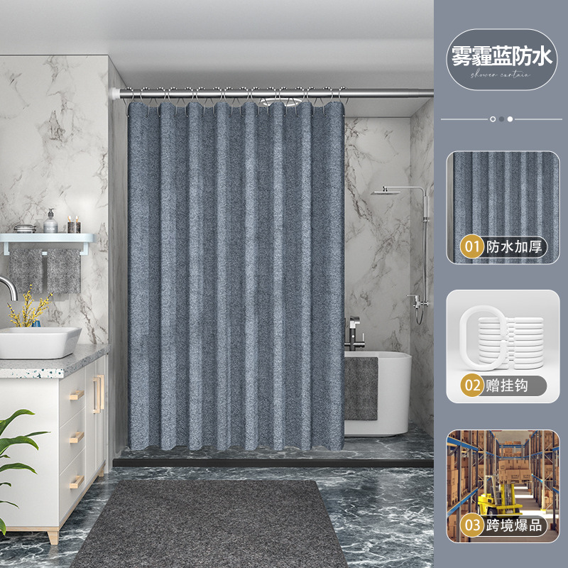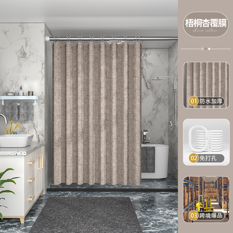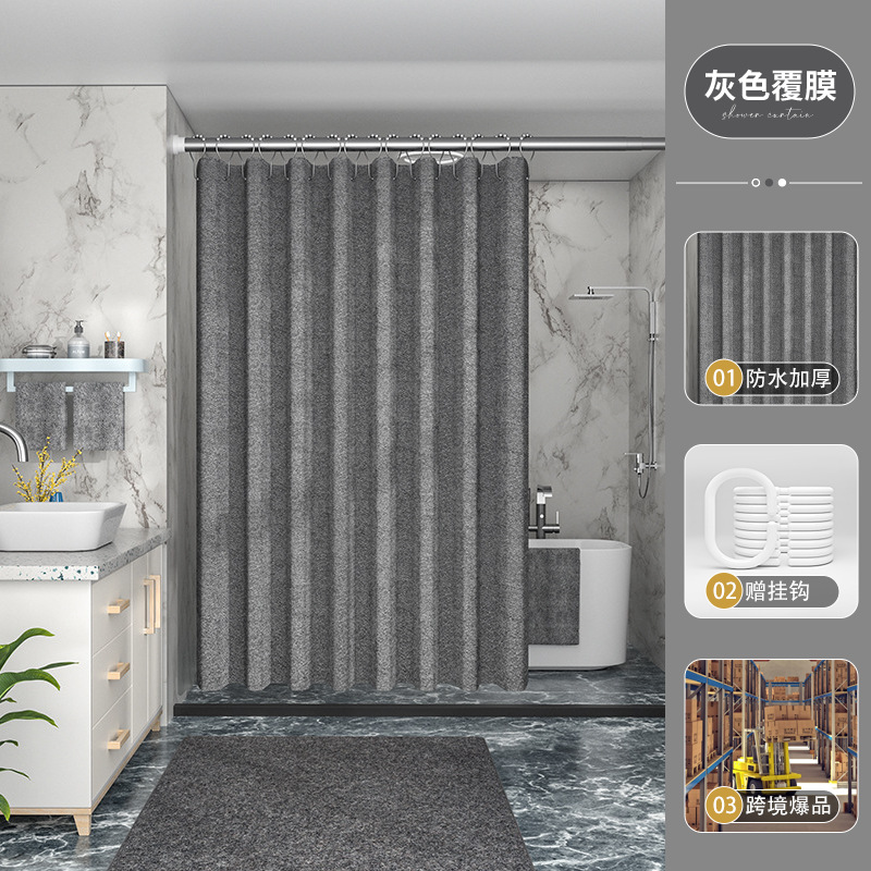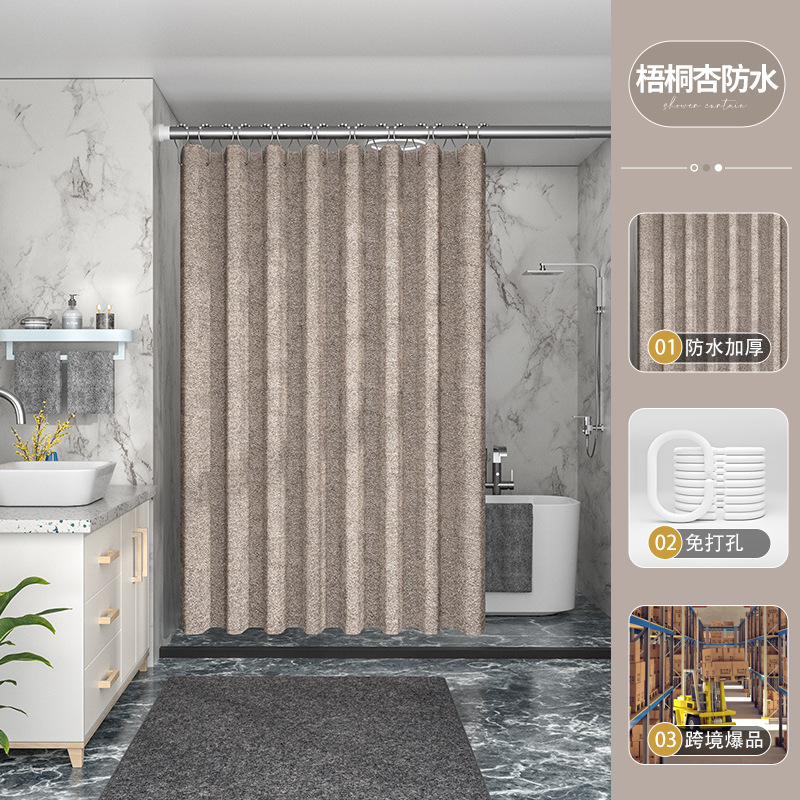 跨境厂家直供230g加厚仿亚麻浴帘防水防霉浴帘涤纶布卫生间现货