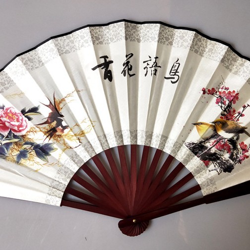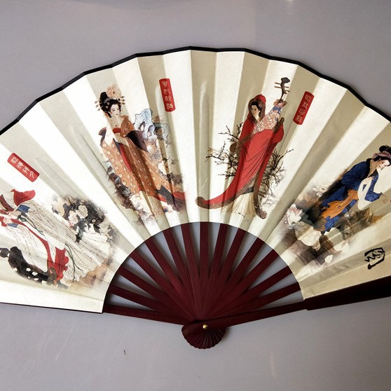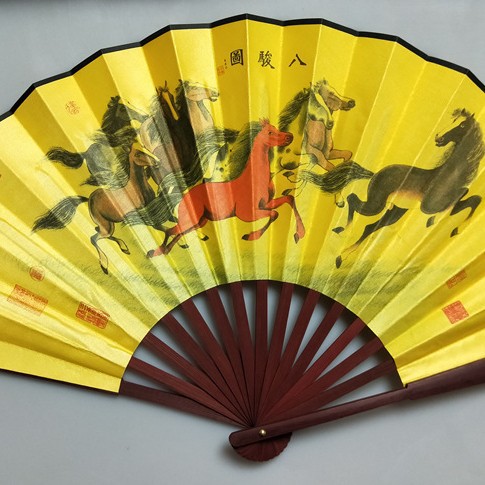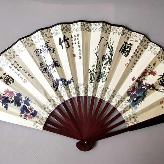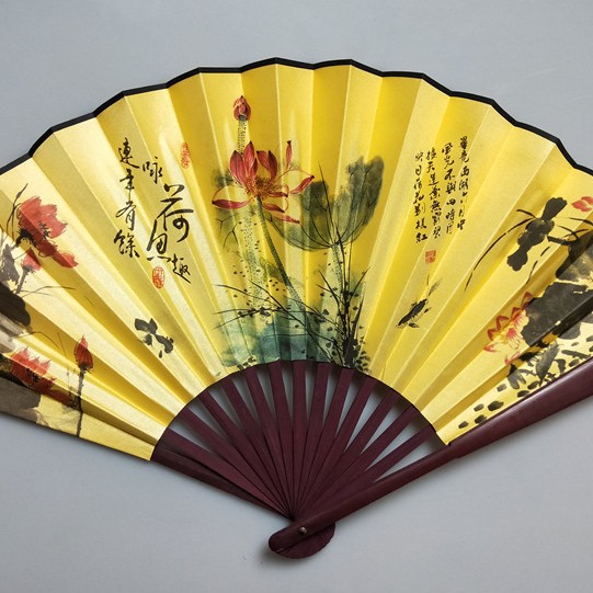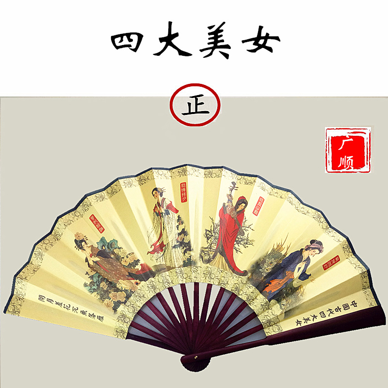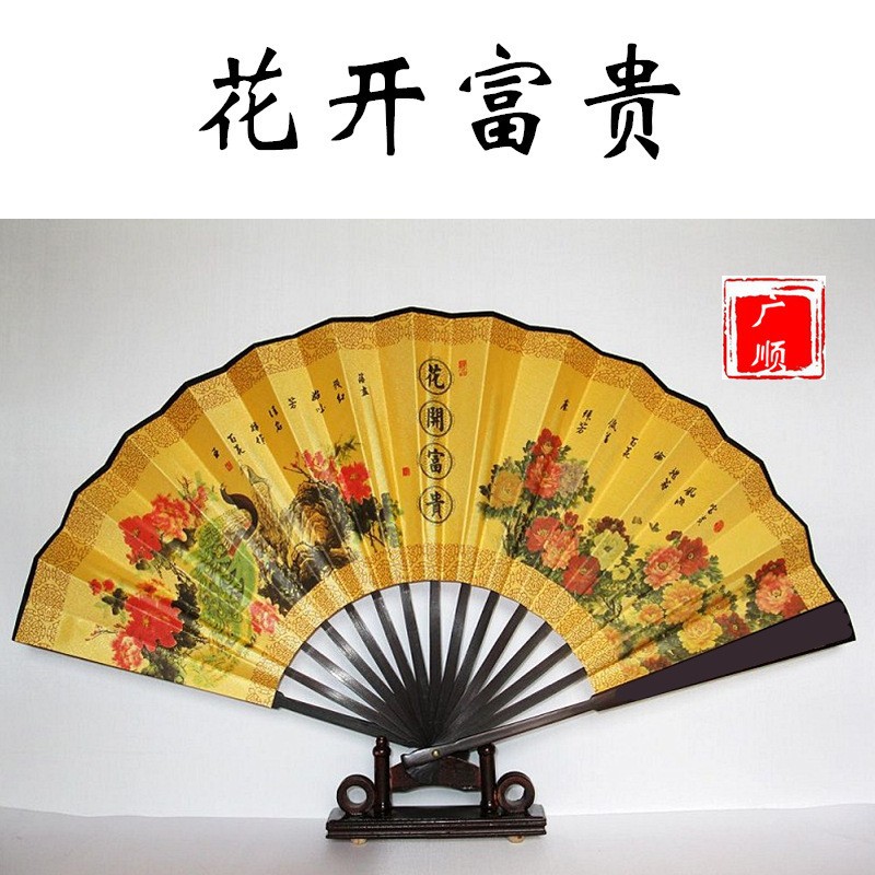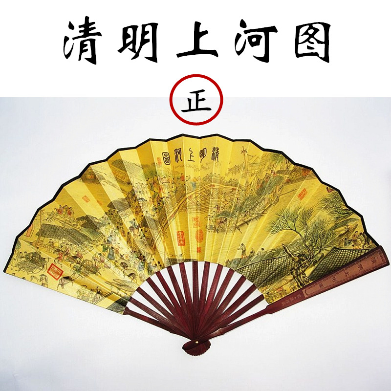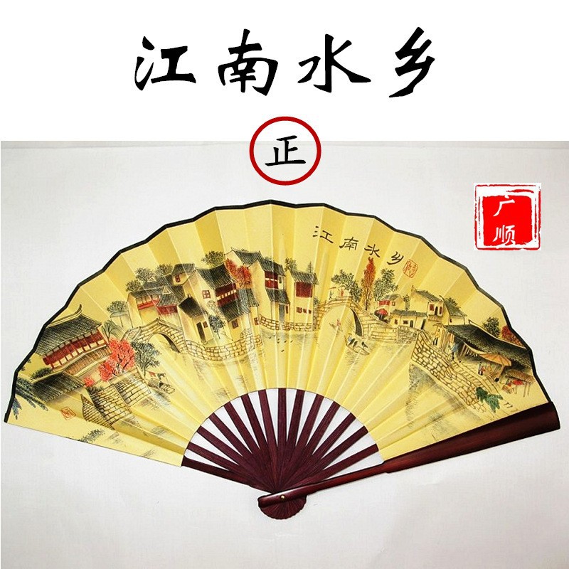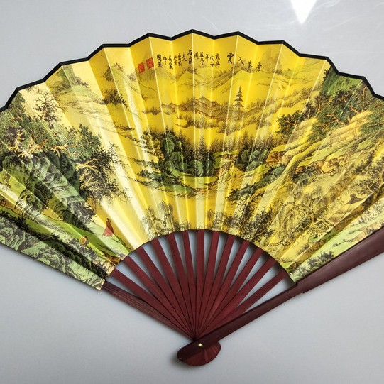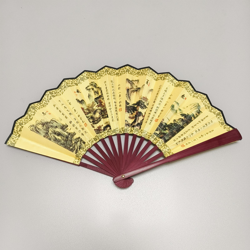 中国风男士折扇景区热卖工艺品男扇绢布折扇古风扇子山水画10寸扇