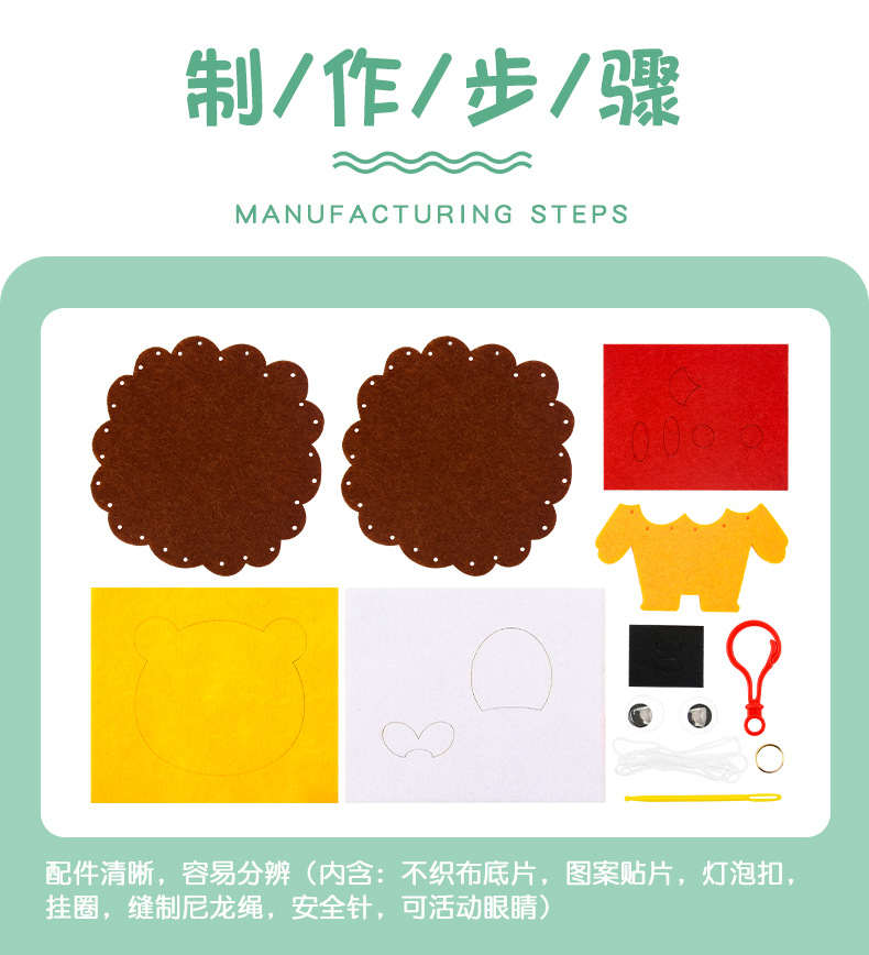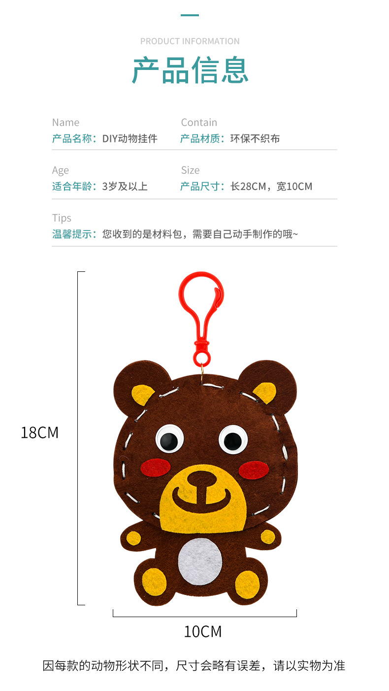 儿童不织布缝缝乐创意手工diy制作材料卡通动物挂件送小朋友礼物