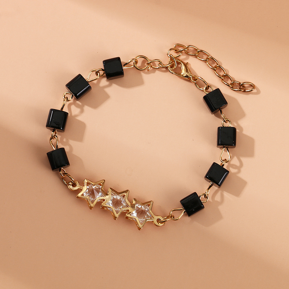 欧美跨境小众设计冷淡风简约时尚五角星锆石方块手链女首饰品