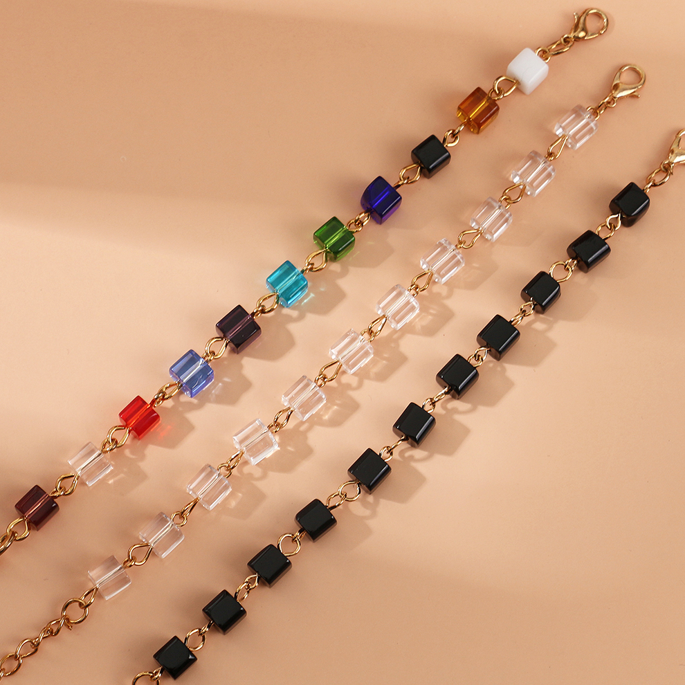 韩国时尚彩色透明水晶手链ins风设计感创意手链学生时尚串珠手环