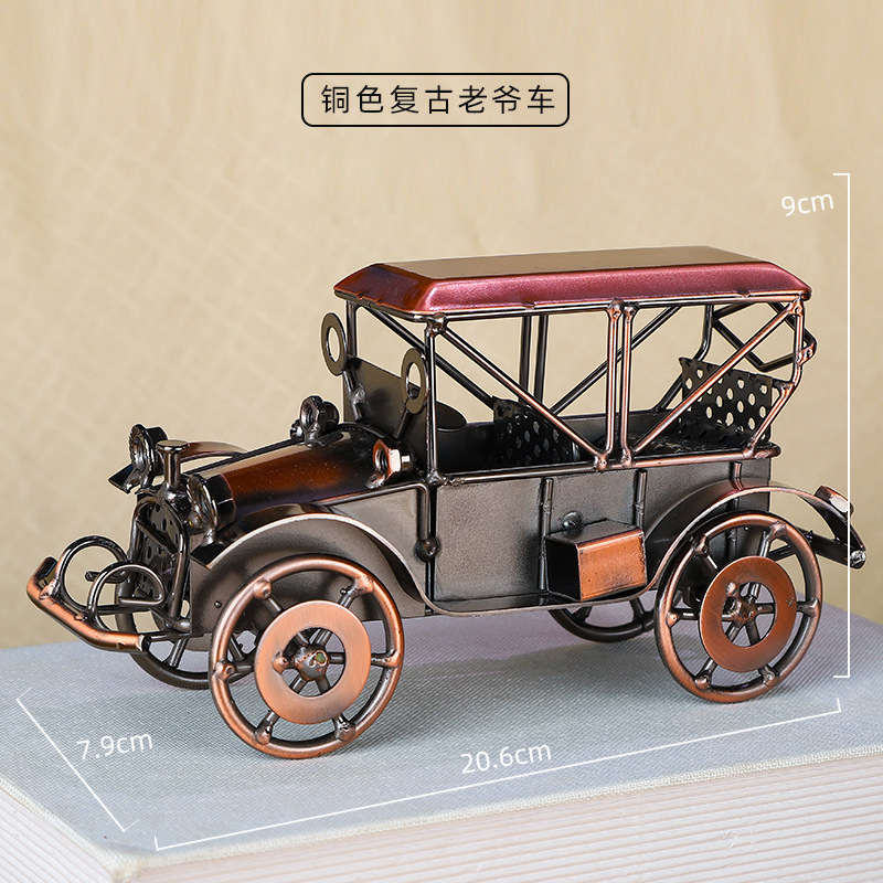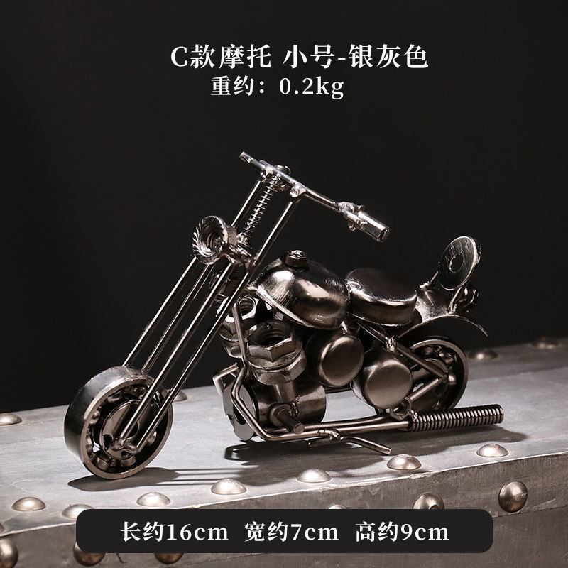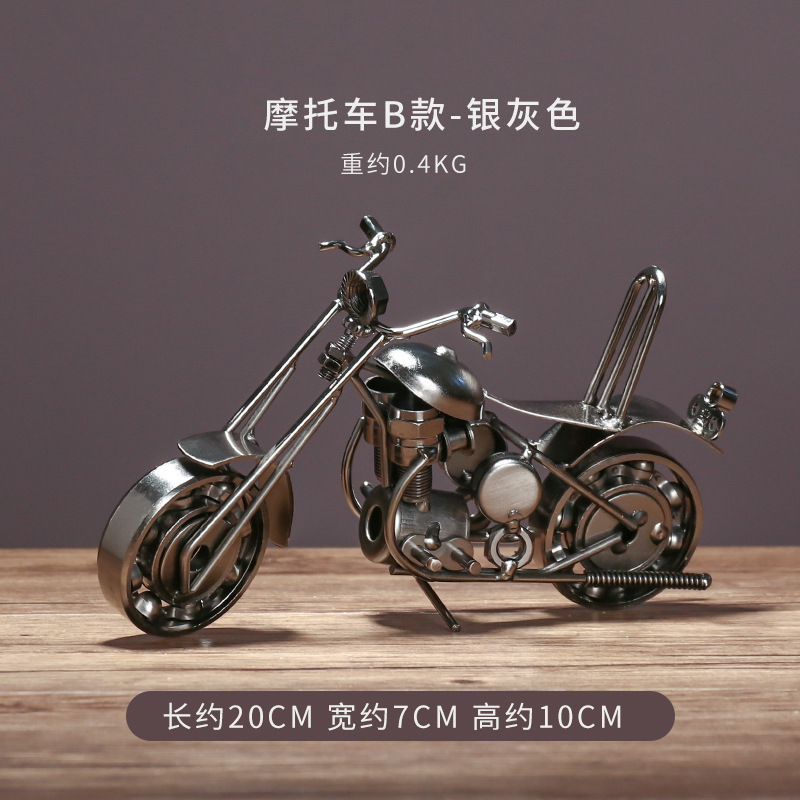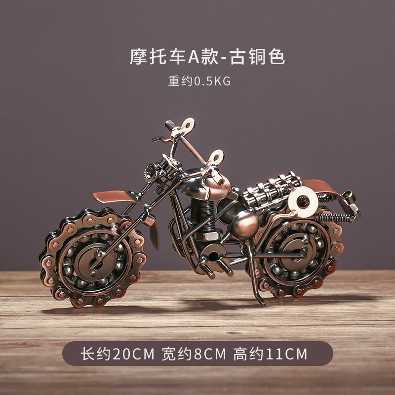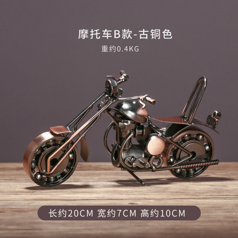 复古摩托车汽车模型客厅酒柜装饰品摆设高级感铁艺金属工艺品摆件