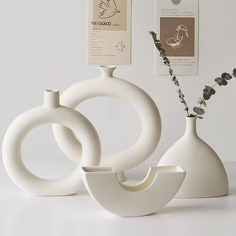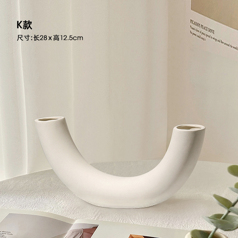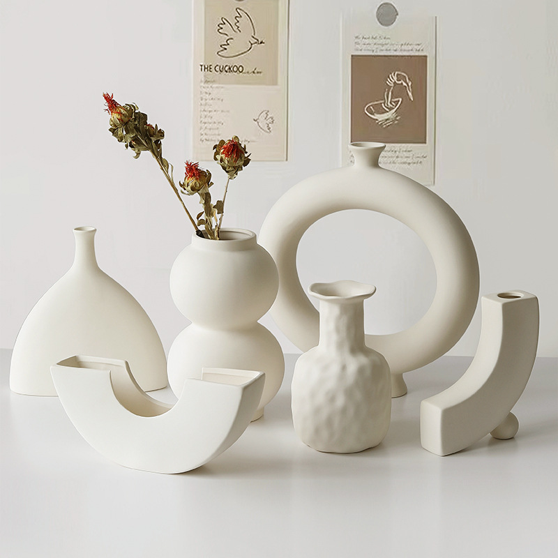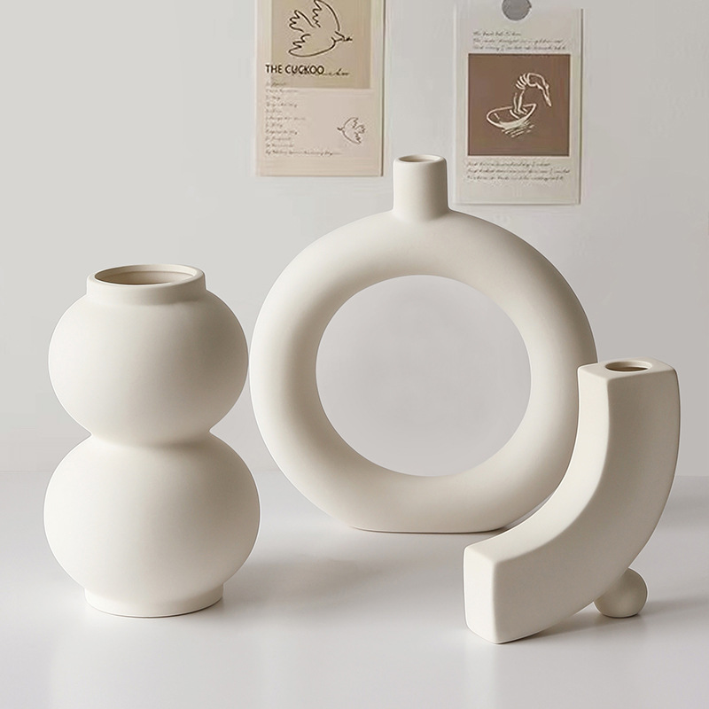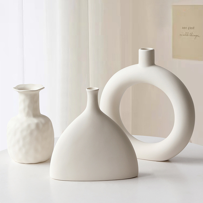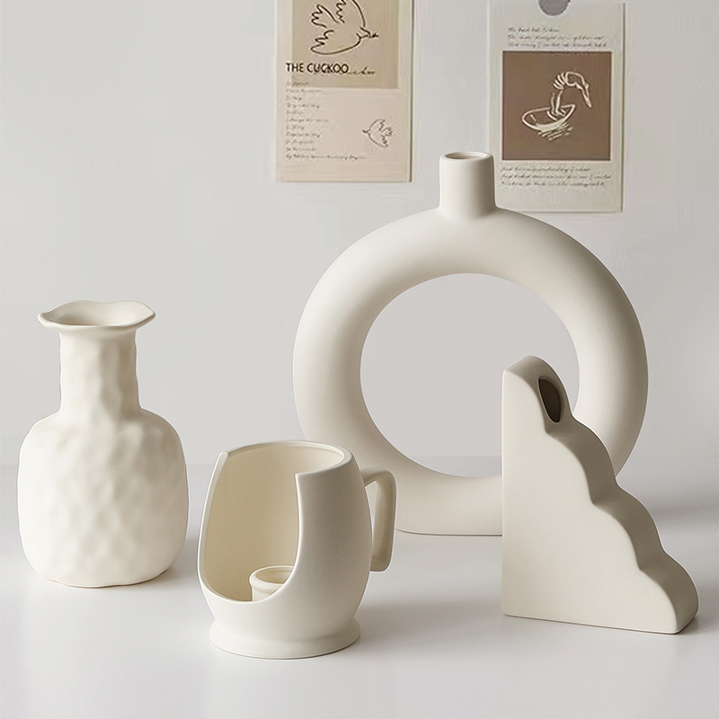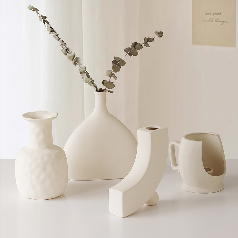 素胚陶瓷花瓶摆件ins侘寂风小众高级感客厅插花玄关电视柜装饰品