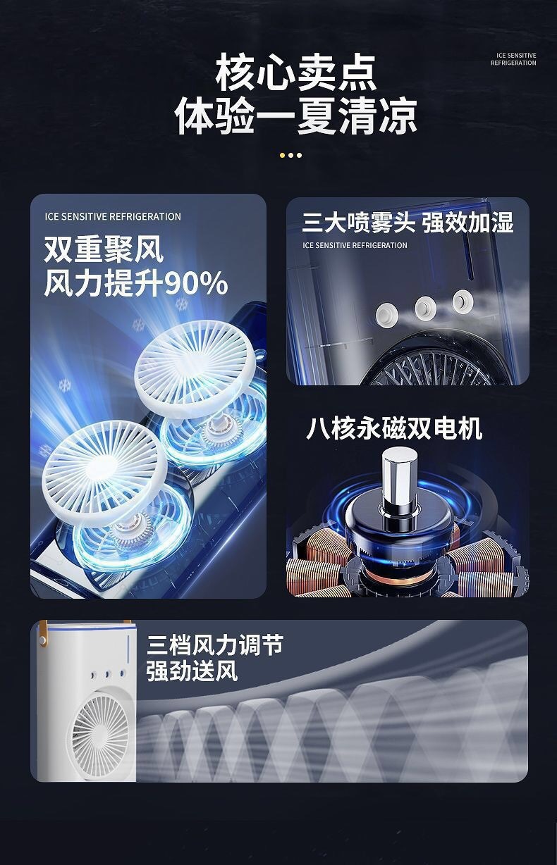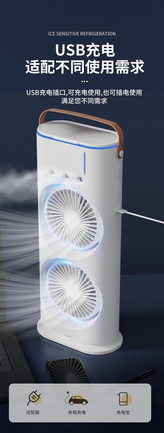 双头三孔喷雾制冷风扇 跨境爆款USB充电强风力静音遥头加湿冷风机