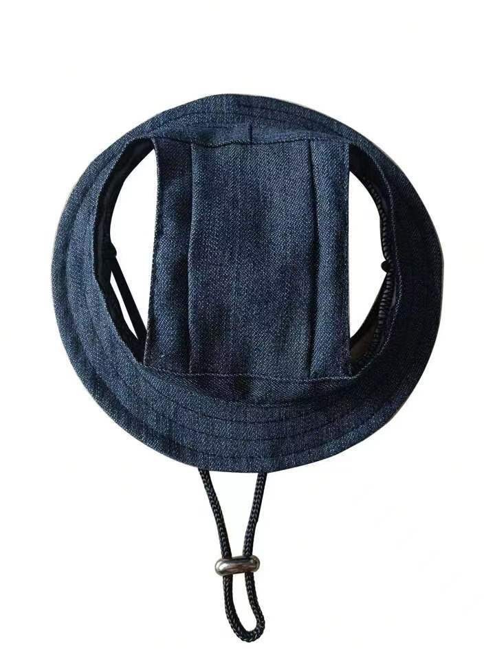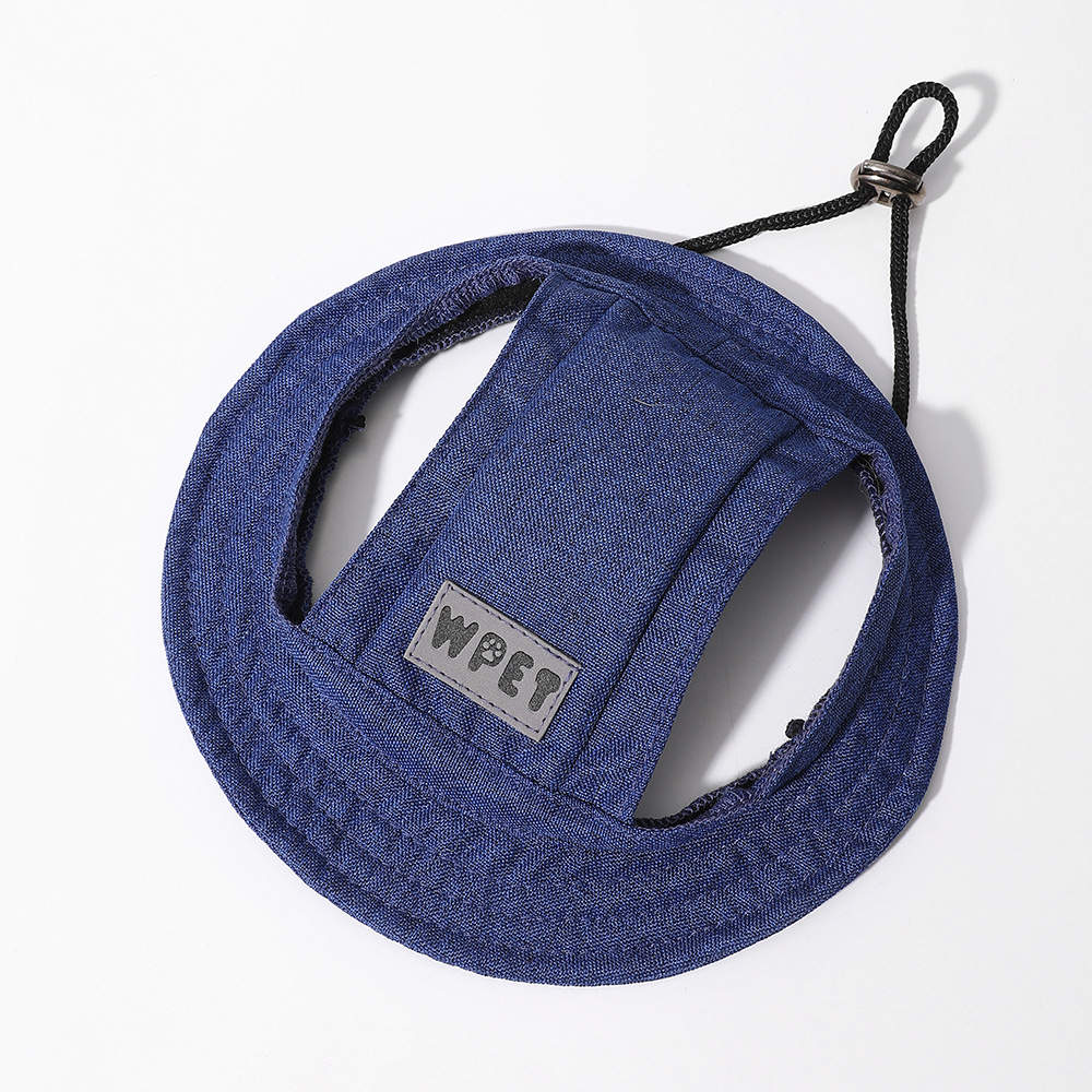 跨境夏季新款宠物帽子小中大型漏耳朵防晒亚麻牛仔色狗狗帽批发