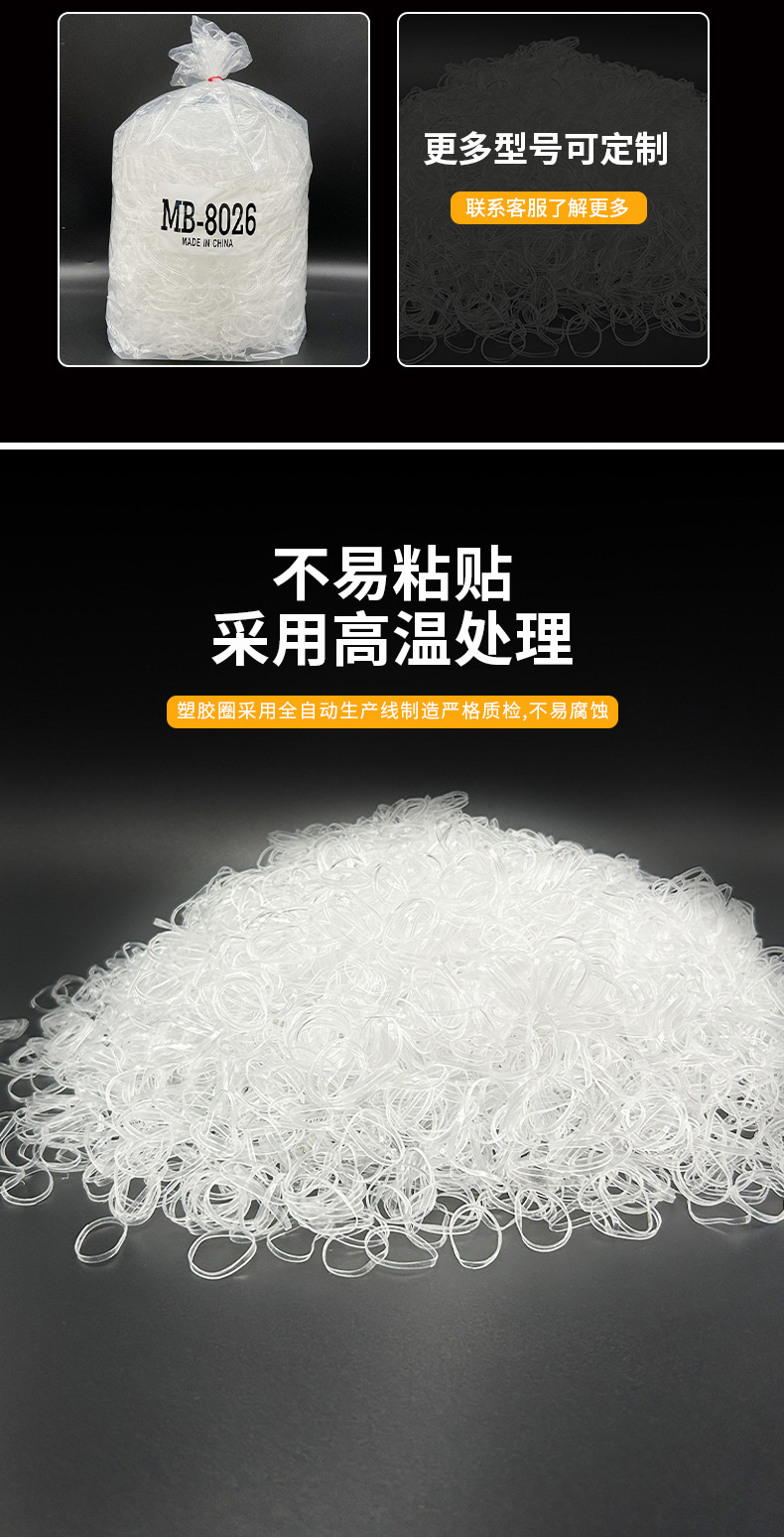 规格齐全一次性皮筋儿童皮筋强拉不断不打油高弹力透明发圈公斤装