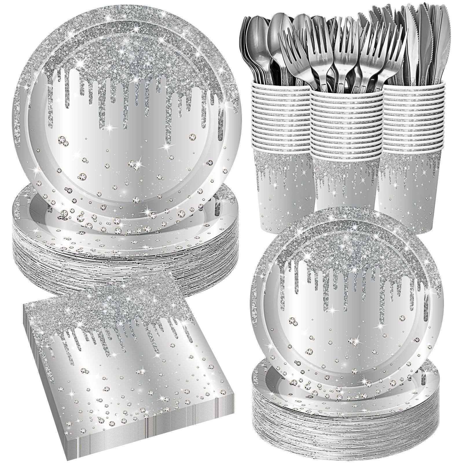 跨境一次性纸盘闪光钻石餐巾和杯子女士生日纪念日婚礼一次性餐具