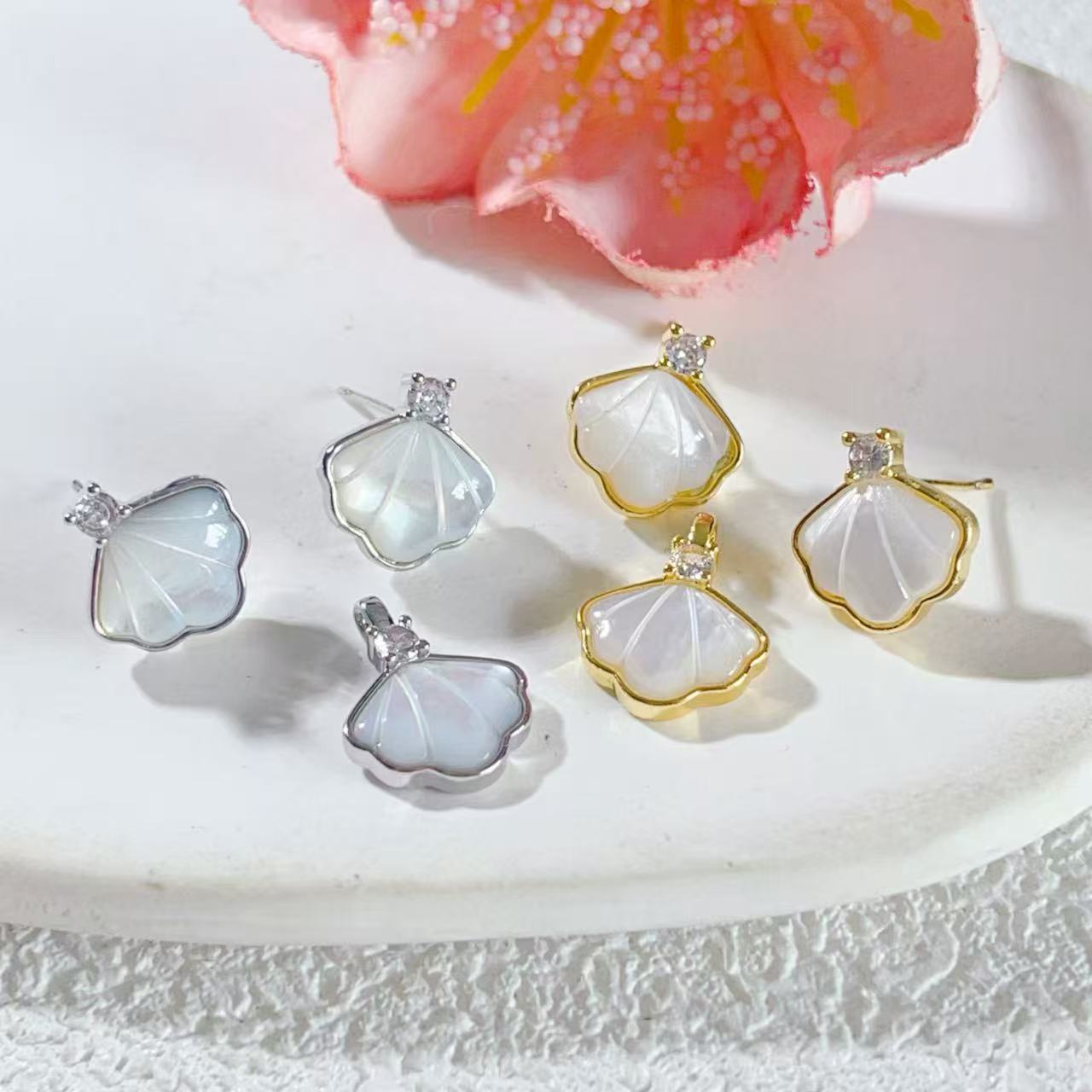 高级感天然贝壳耳钉仙女风一贝子锁骨链白贝母耳环项链套装饰品