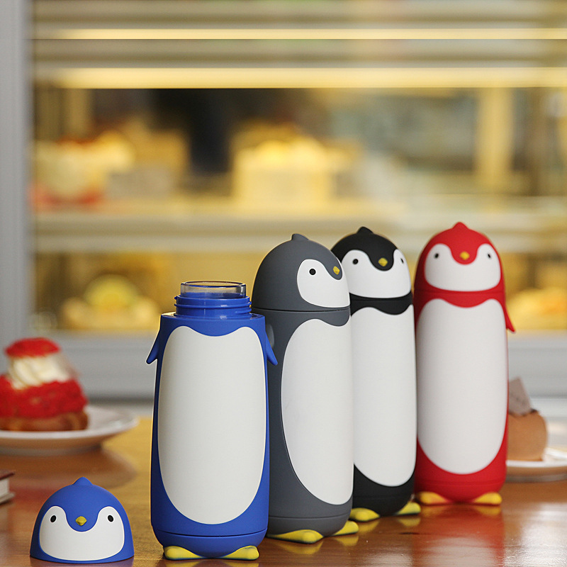 创意卡通动物企鹅双层玻璃杯学生礼品水瓶礼品外贸跨境饮料