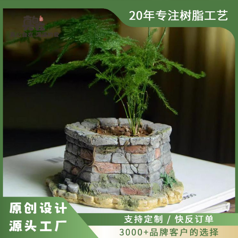 创意仿水井花盆摆件阳台花园门庭造景书房客厅造景可送礼自行观赏