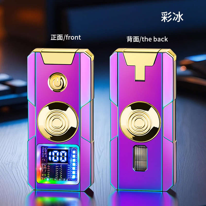 彩灯智能电弧充电打火机电量显示带照明灯金属机身高颜值送礼男士