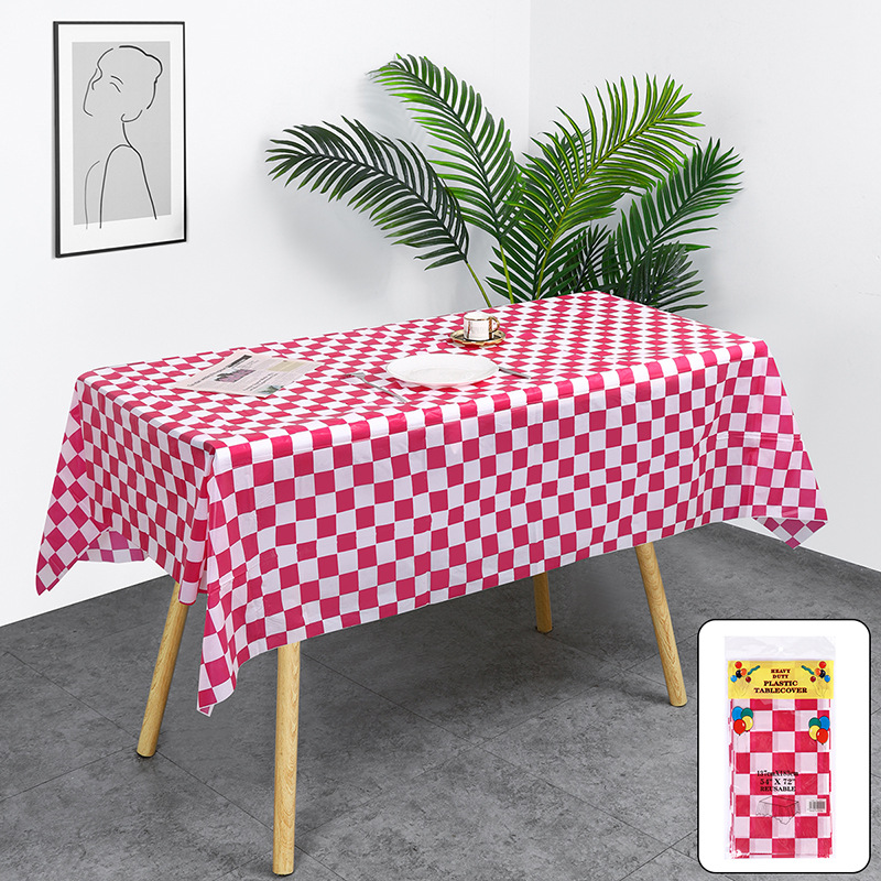 厂家直销现货批发 亚马逊格子派对桌布 一次性塑料桌布137*274