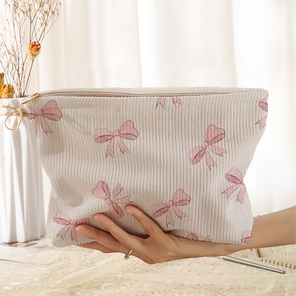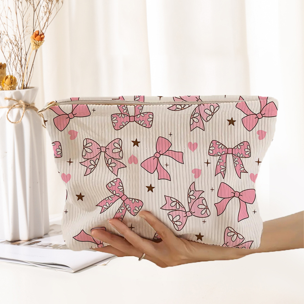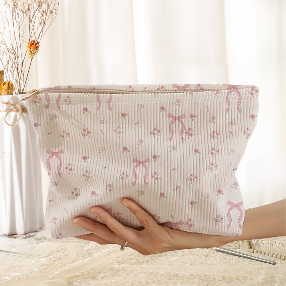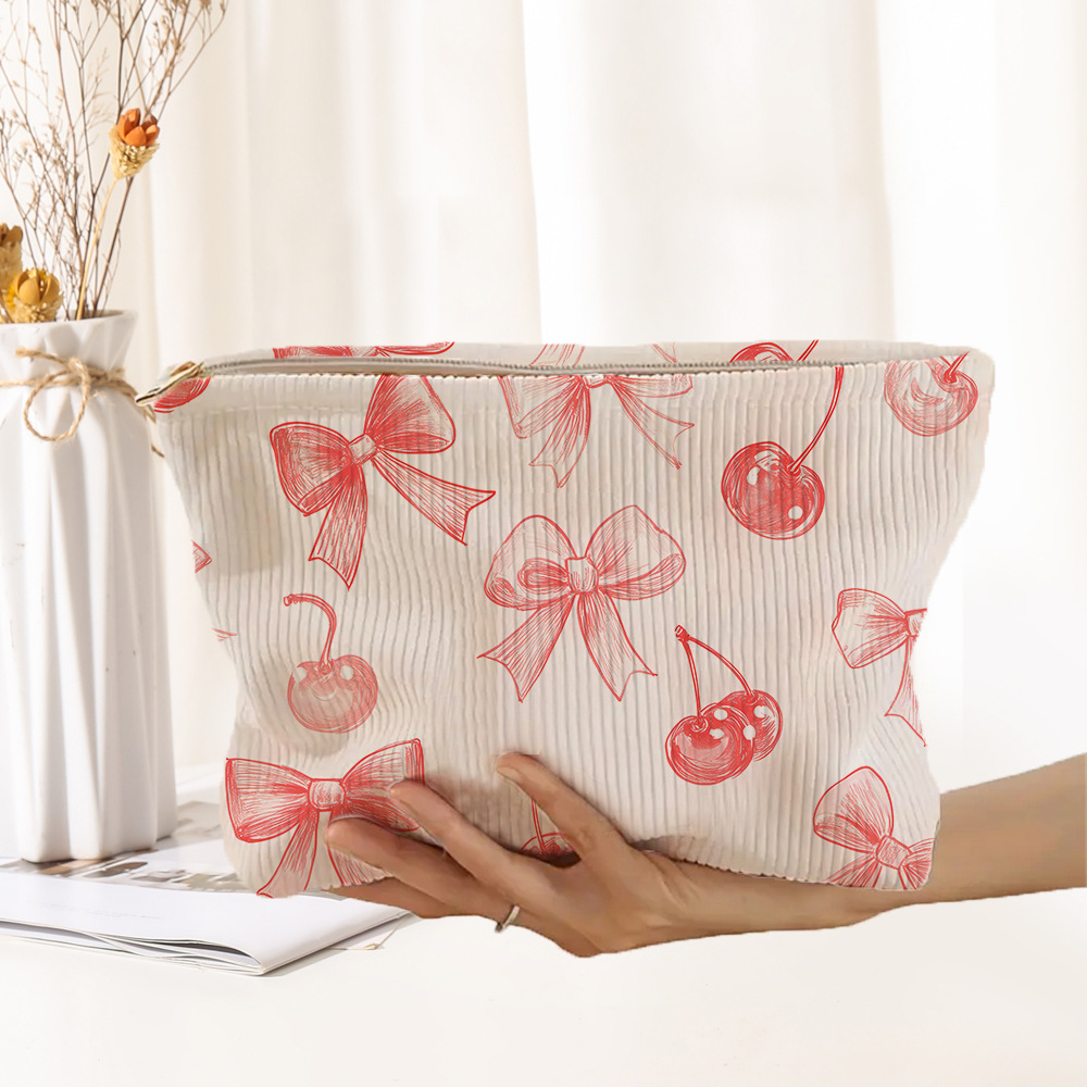 SHEIN亚马逊TEMU彩色大蝴蝶结印花图灯芯绒拉链收纳袋轻便化妆包