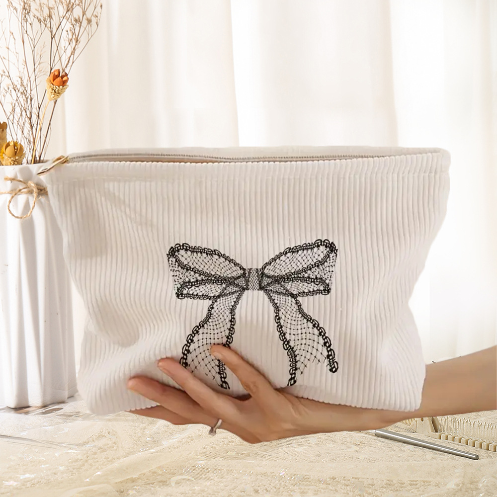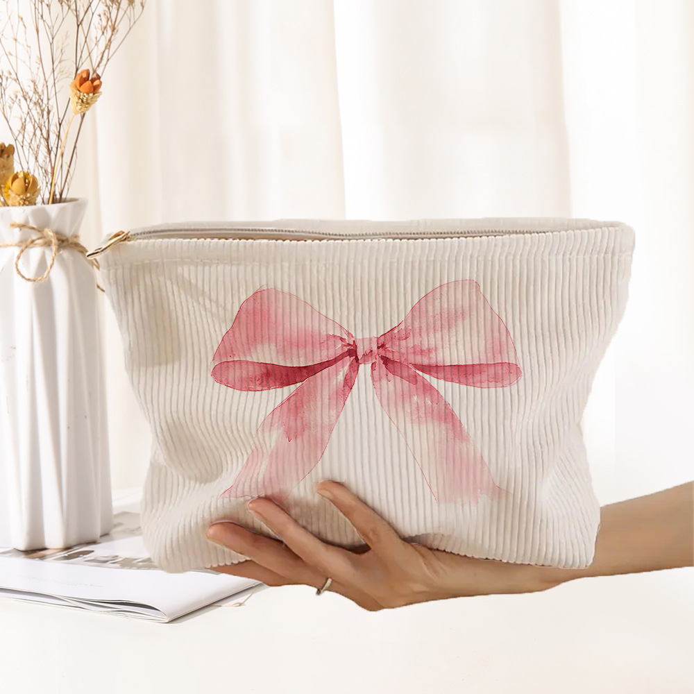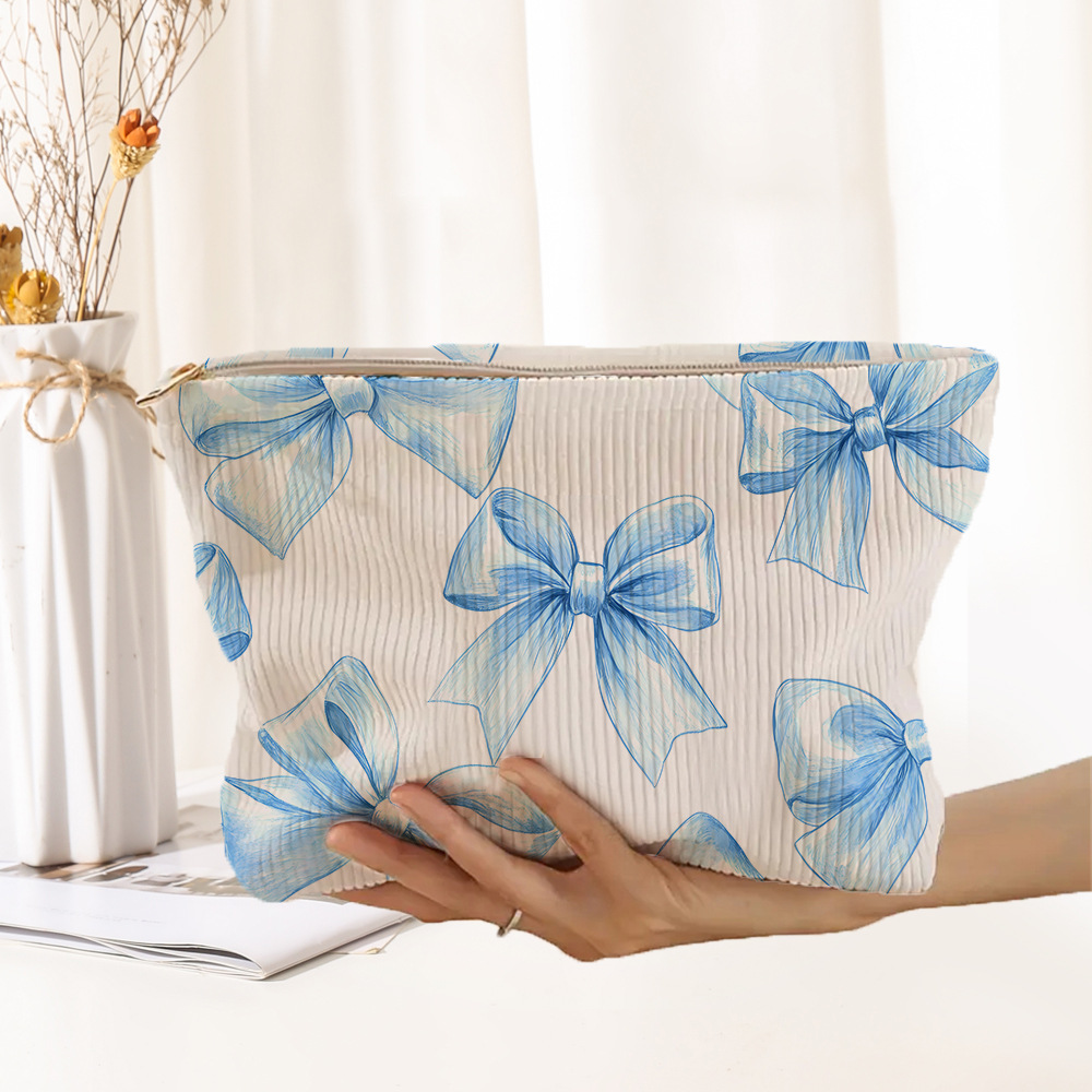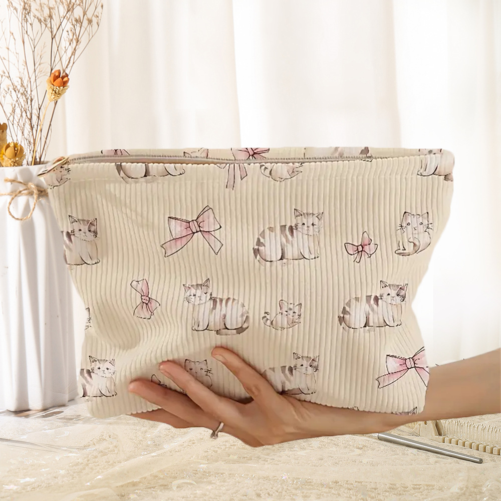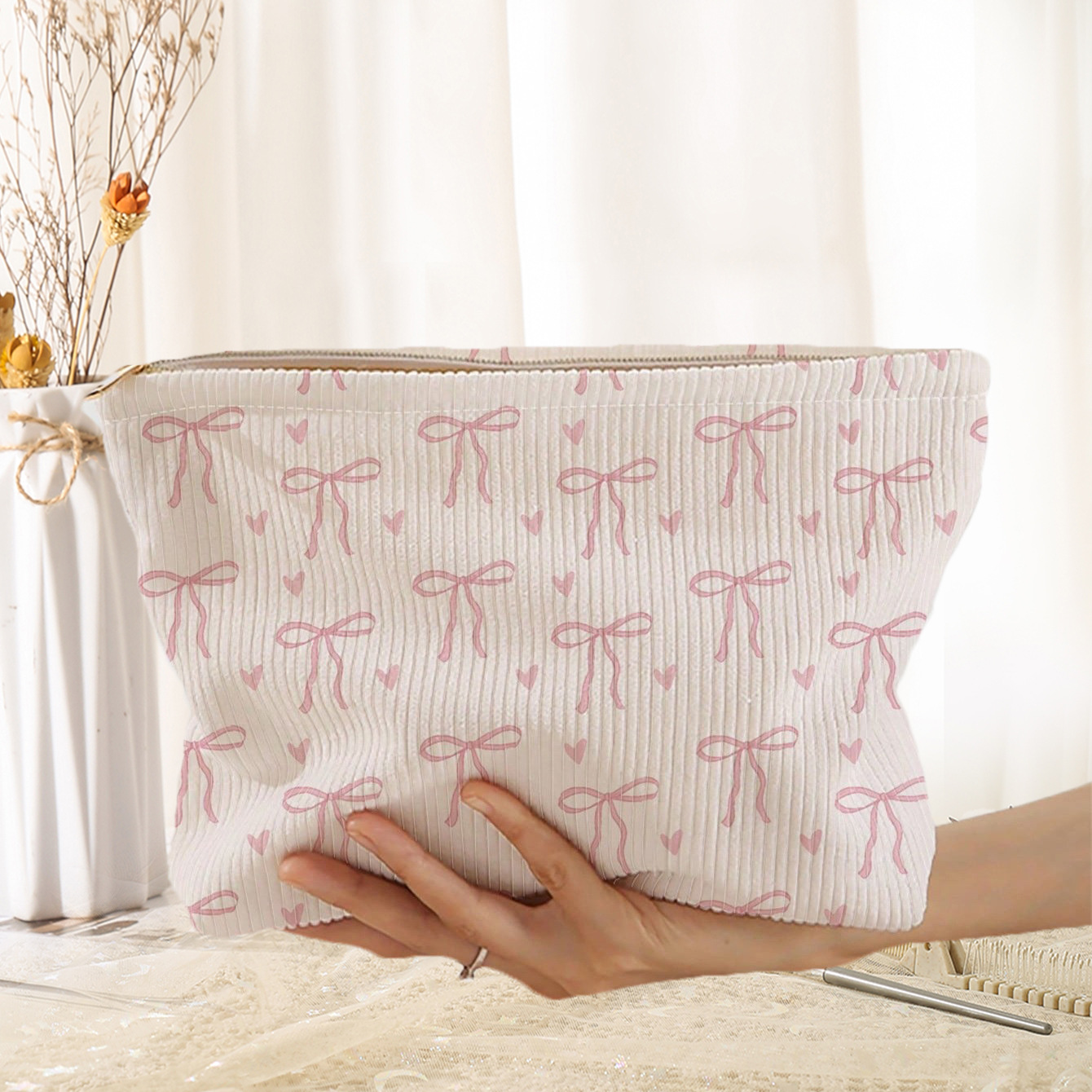 SHEIN亚马逊TEMU彩色大蝴蝶结印花图灯芯绒拉链收纳袋轻便化妆包