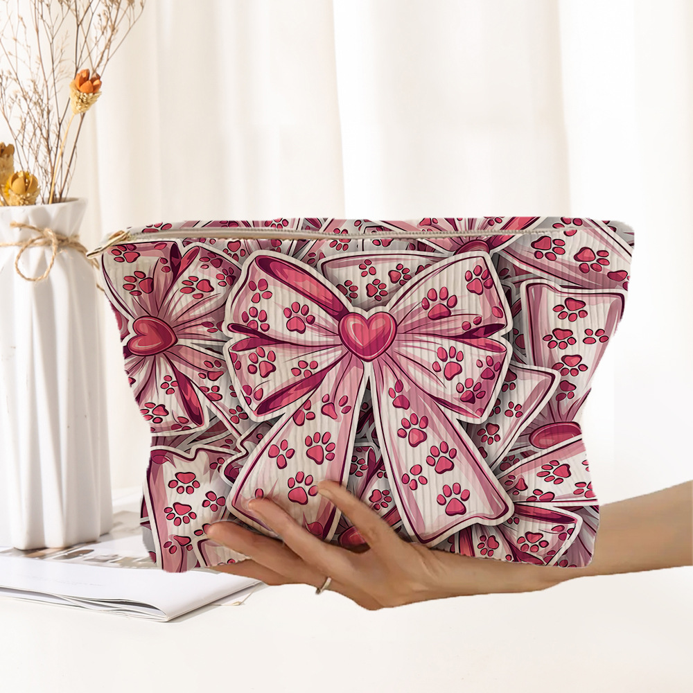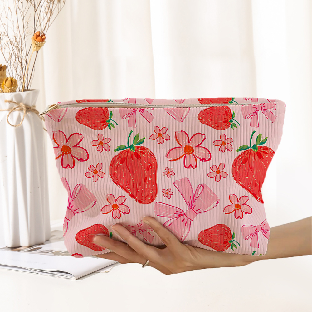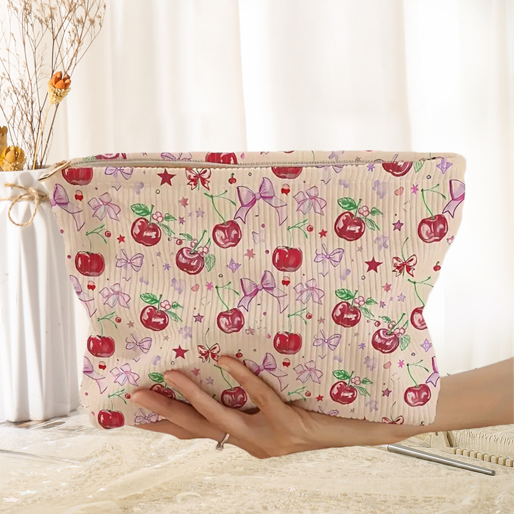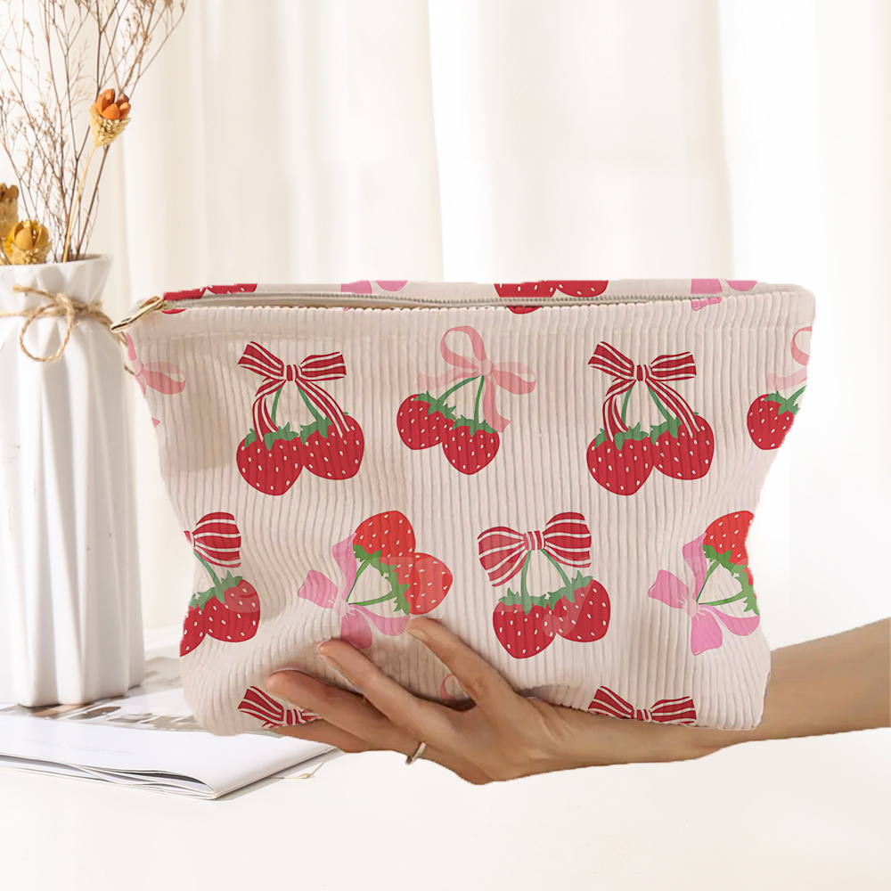 SHEIN亚马逊TEMU彩色大蝴蝶结印花图灯芯绒拉链收纳袋轻便化妆包