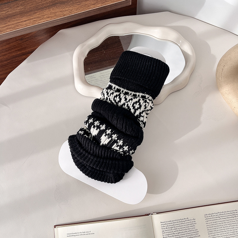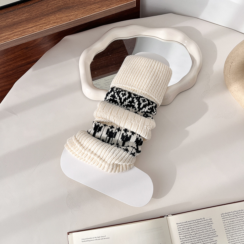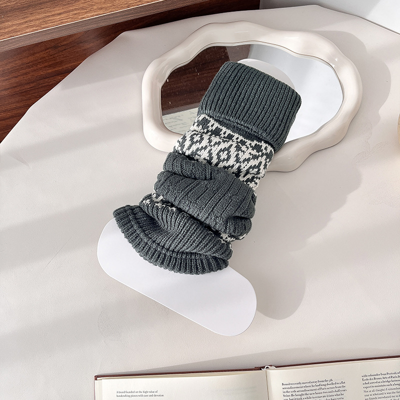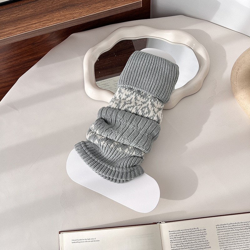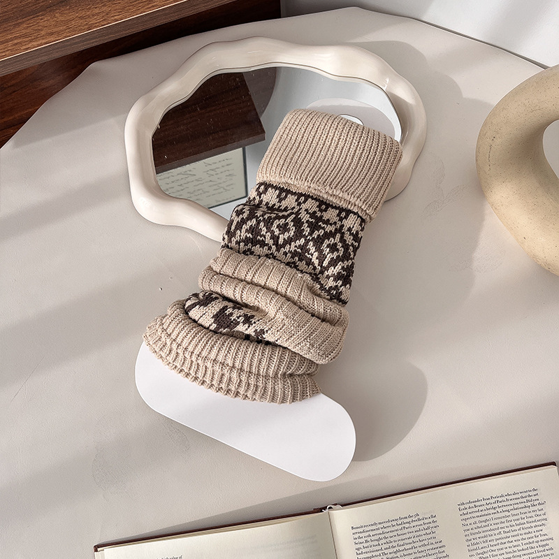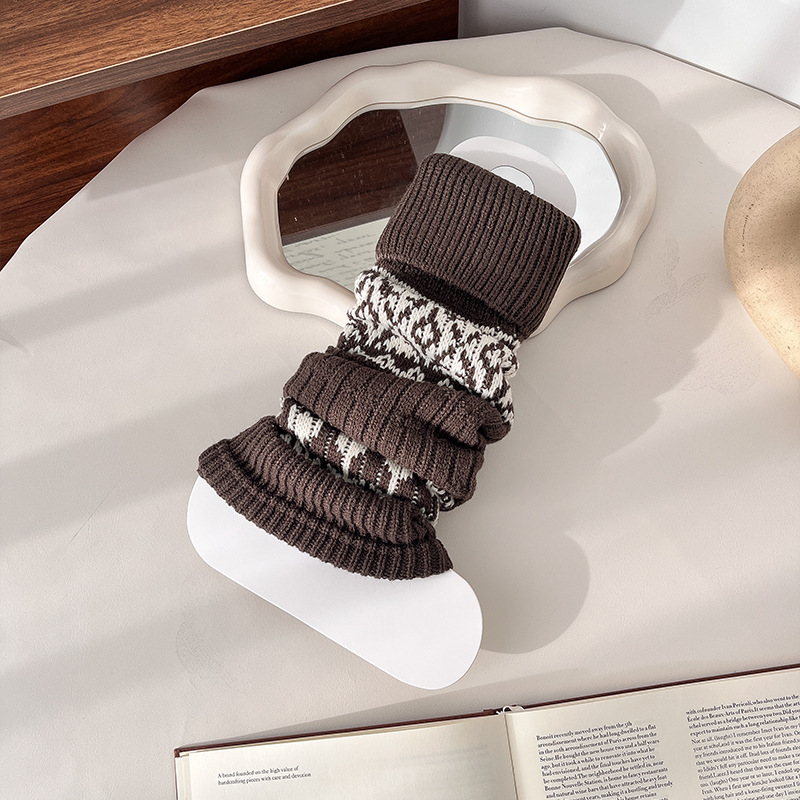 费尔岛袜套女复古咖色堆堆袜冬天加厚保暖针织腿套显瘦百搭小腿袜
