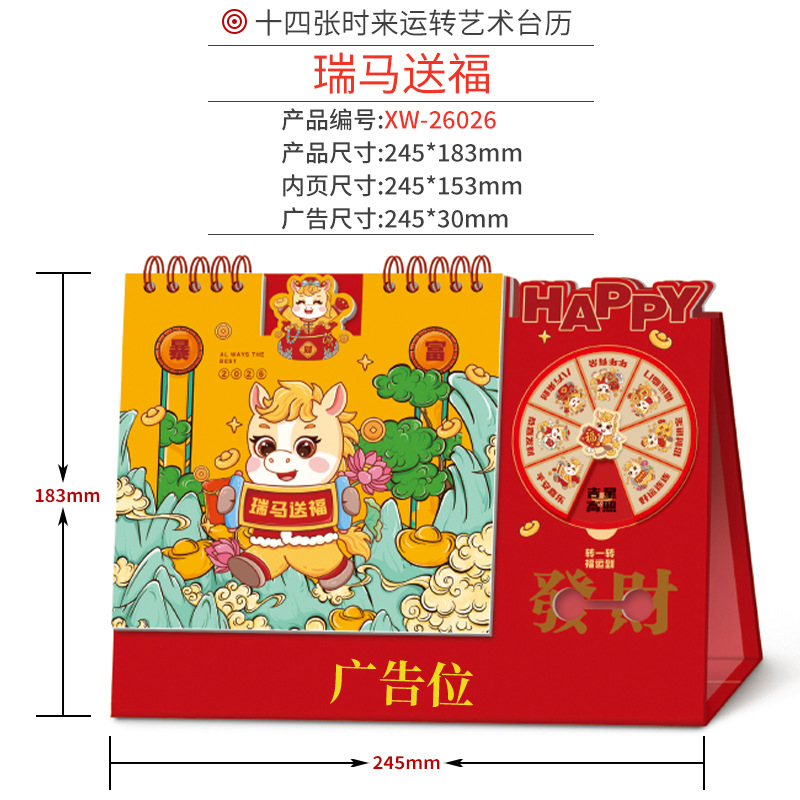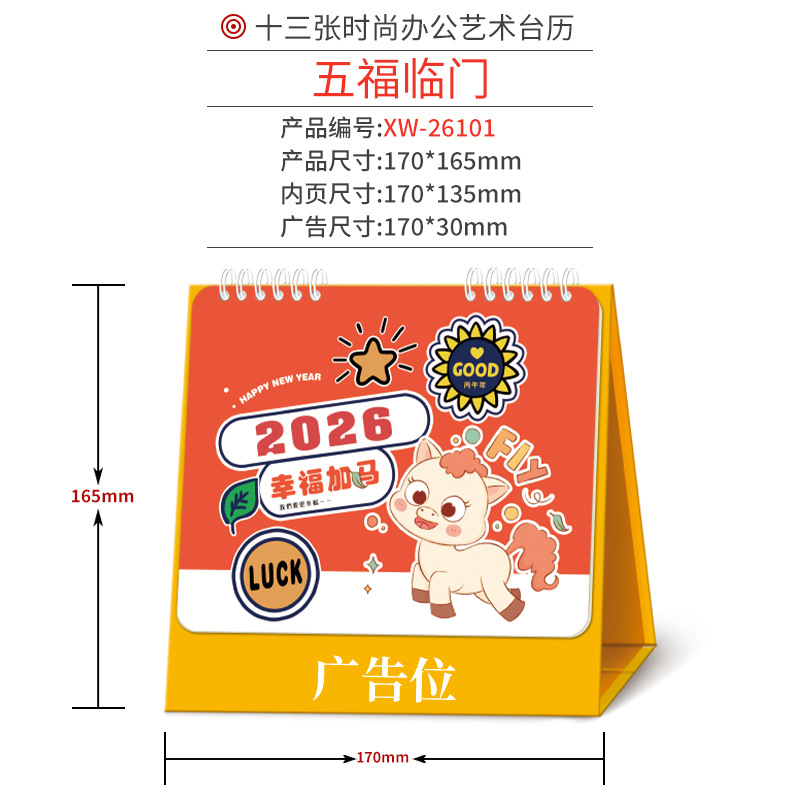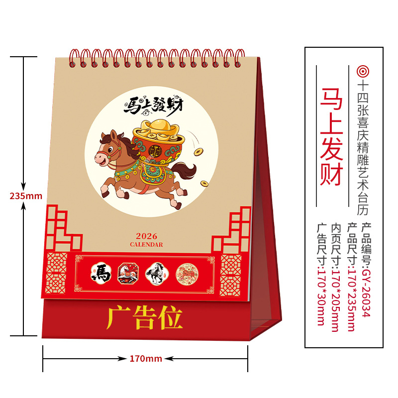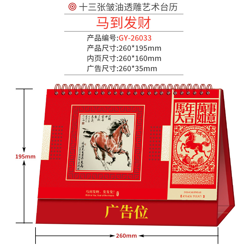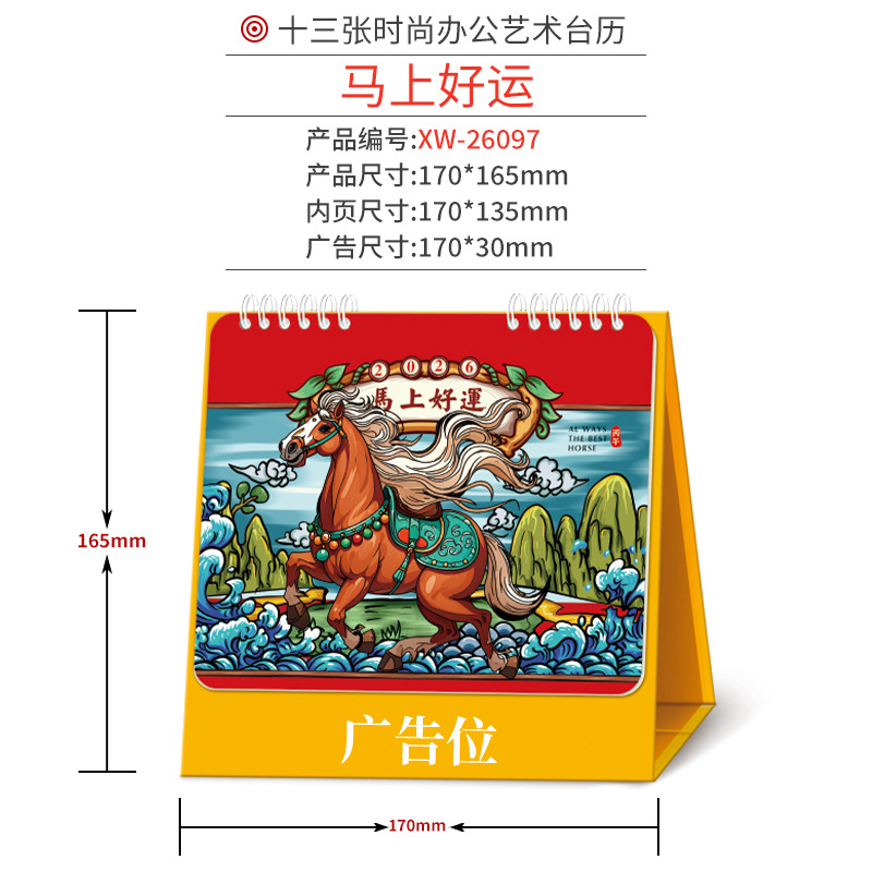 企业台历定制商务广告印刷办公室挂历摆件2026年马年日历现货批发