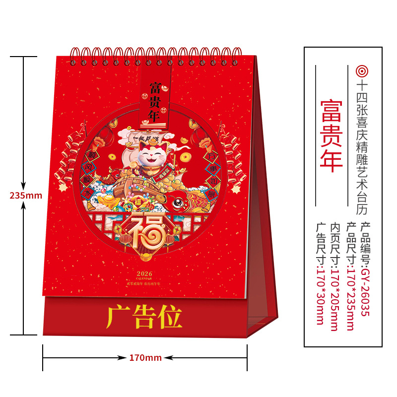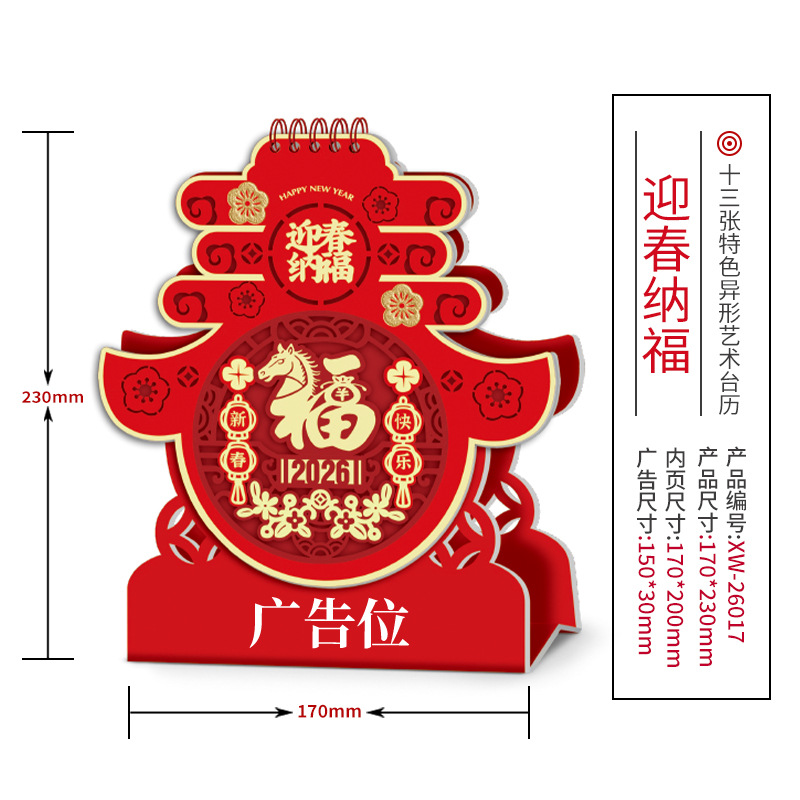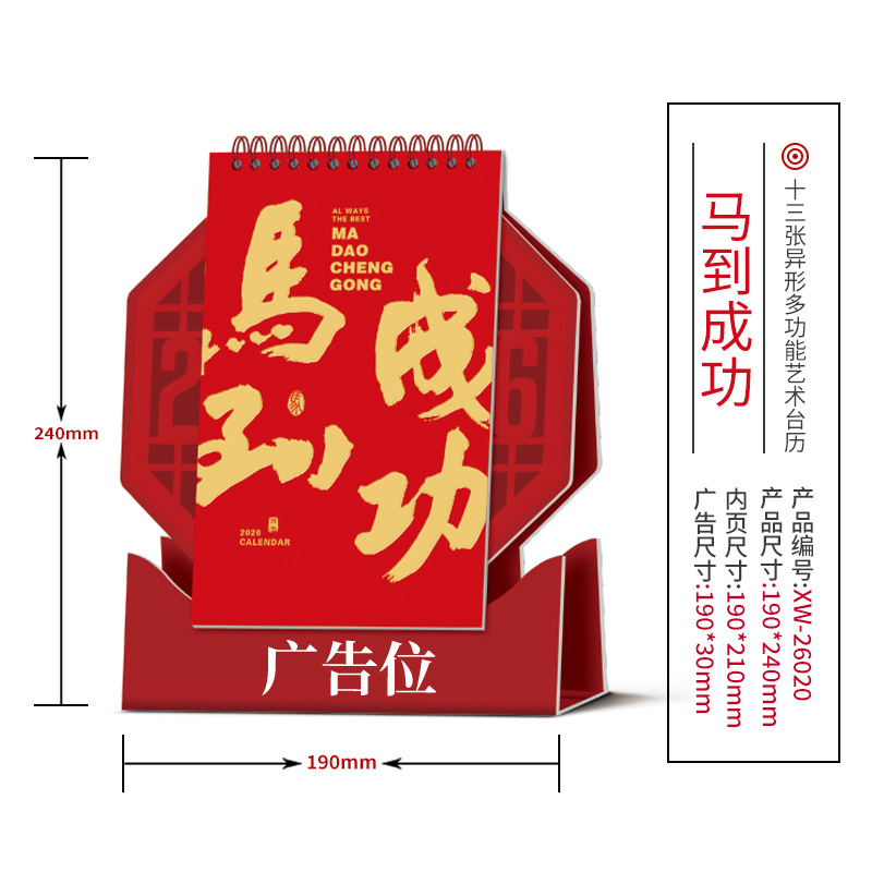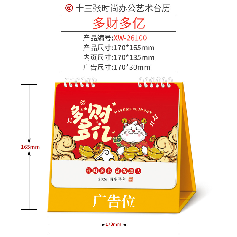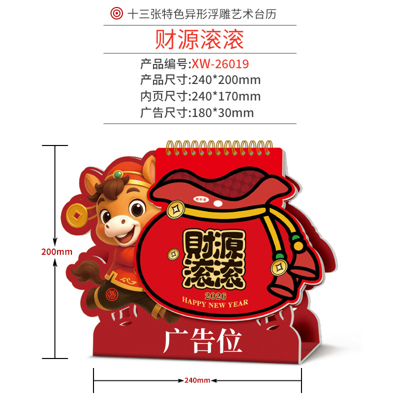 企业台历定制商务广告印刷办公室挂历摆件2026年马年日历现货批发