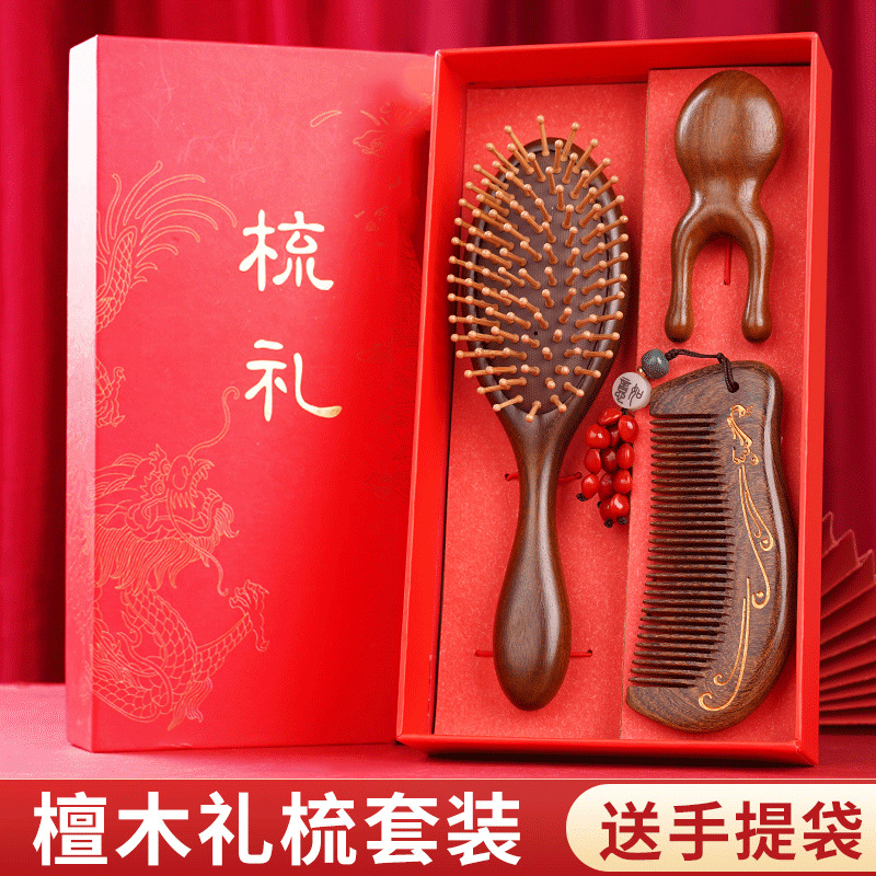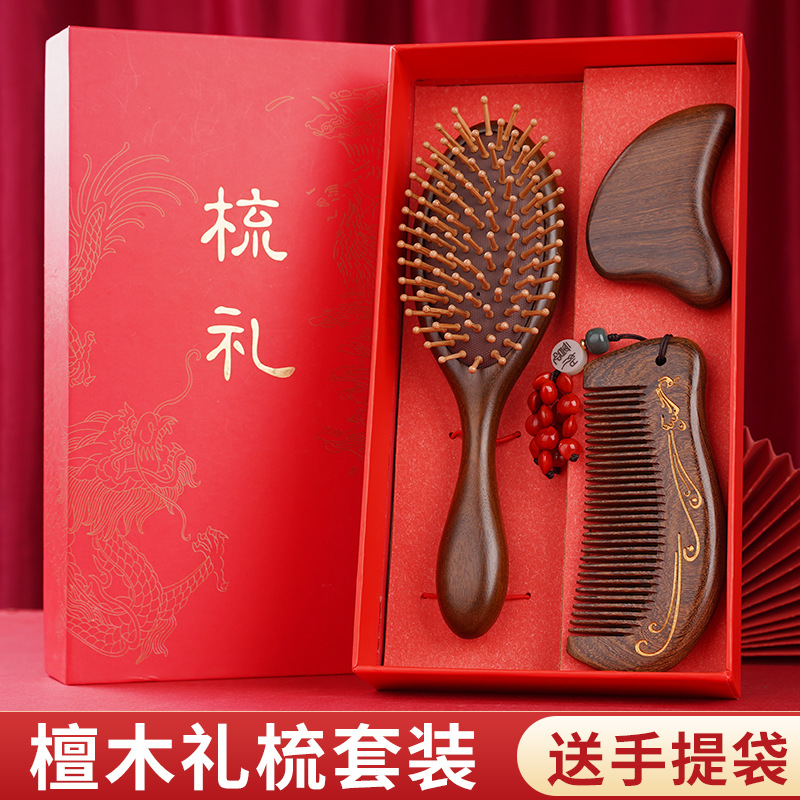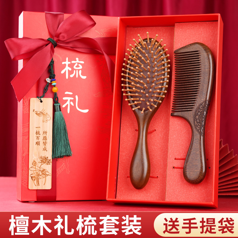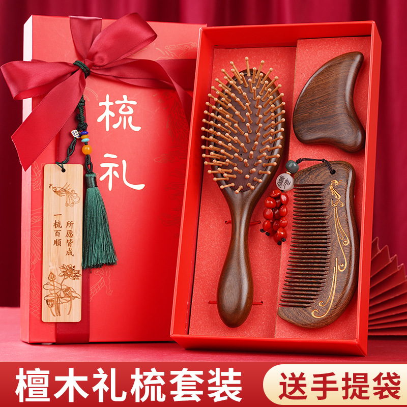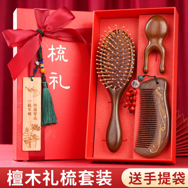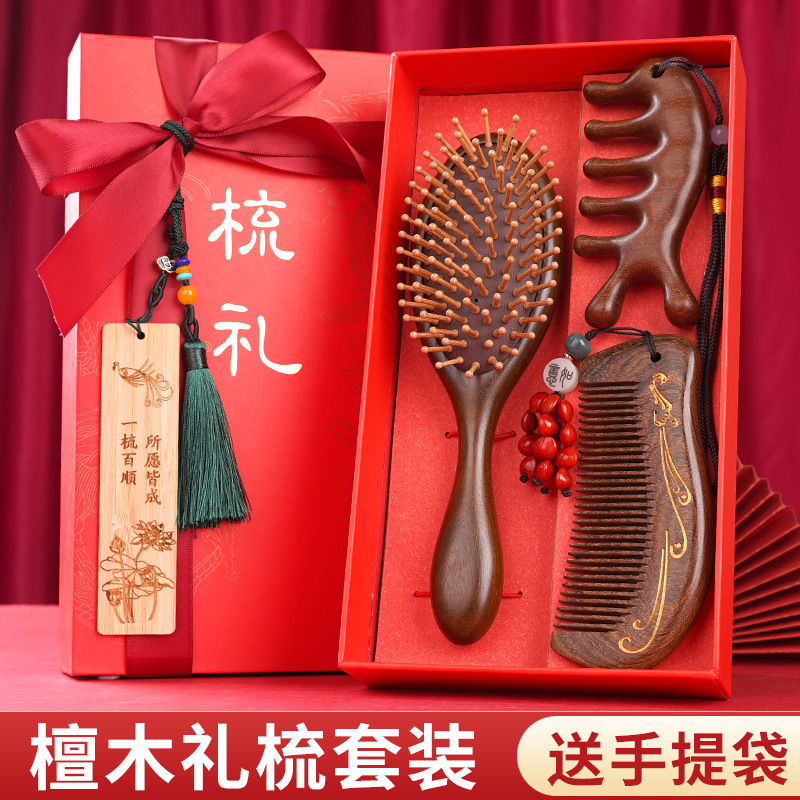 金丝檀木气垫梳子礼盒毕业季送老师同学礼物伴手礼礼盒气囊梳套装