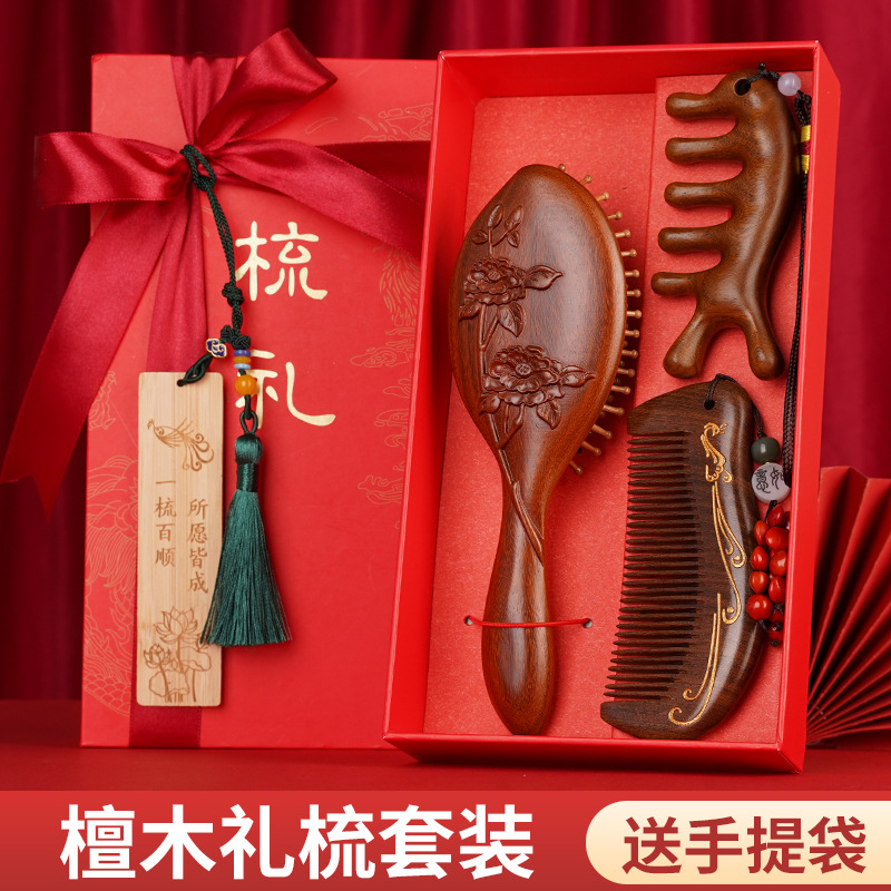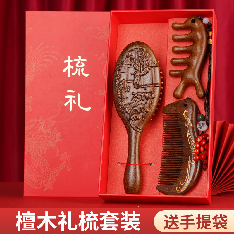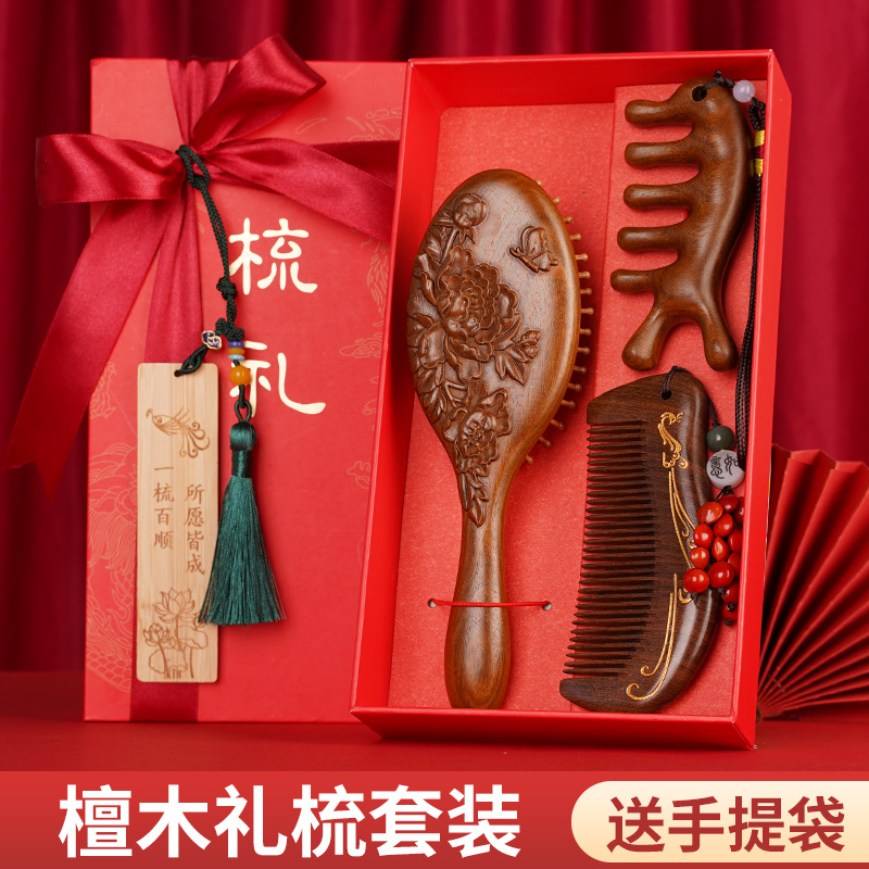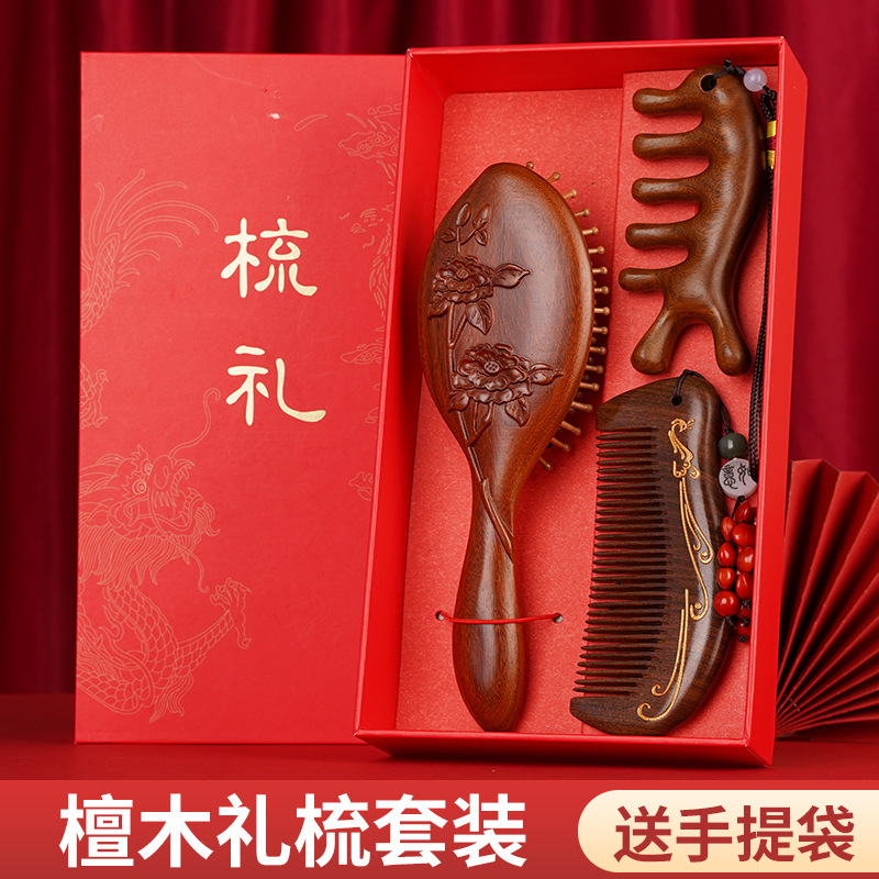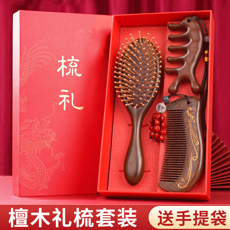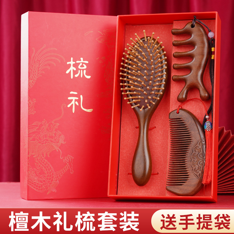 金丝檀木气垫梳子礼盒毕业季送老师同学礼物伴手礼礼盒气囊梳套装