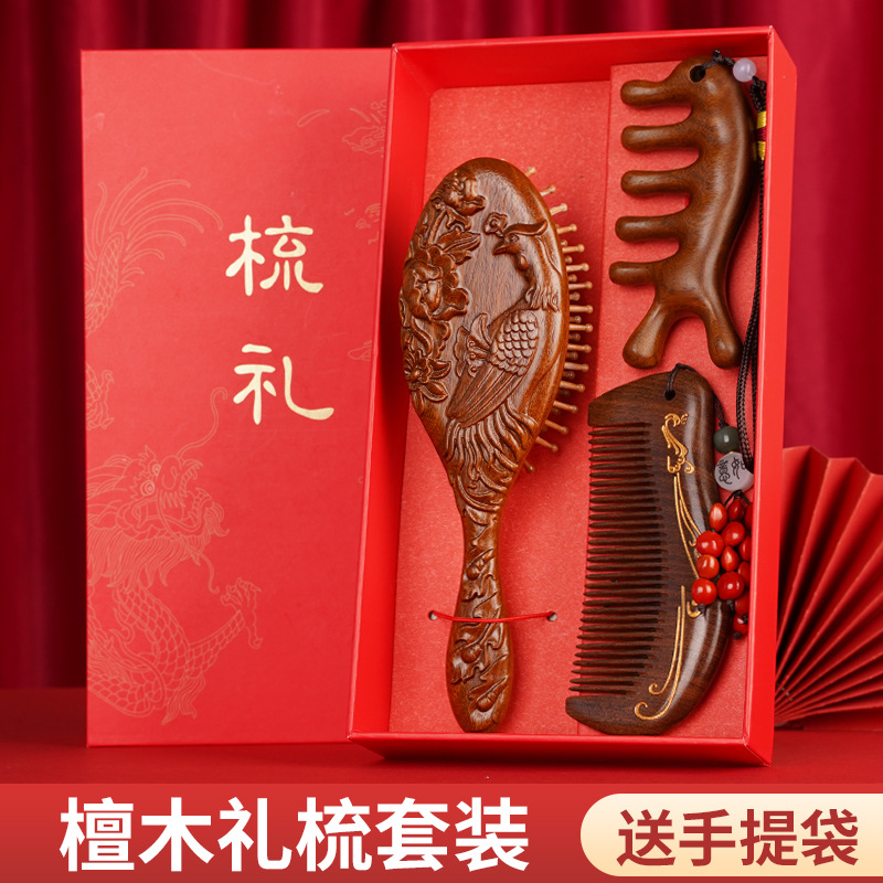 雕刻凤凰+凤凰月梳+按摩梳套装