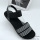 新款黑白条纹平底凉鞋女 双一字带软底 PU 通勤逛街百搭款