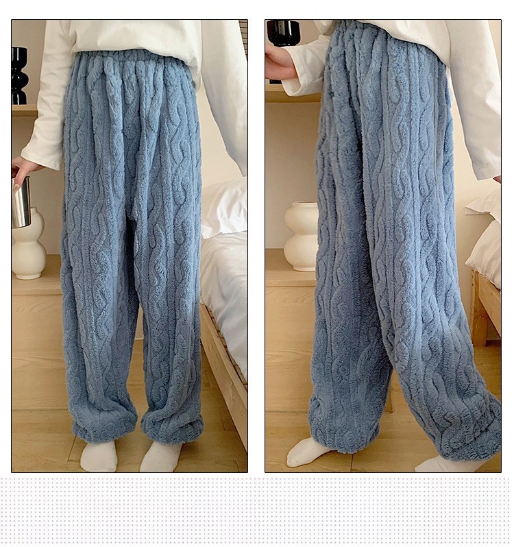 法兰绒睡裤女式珊瑚绒加绒加厚保暖提花家居裤秋冬束脚宽松毛绒裤