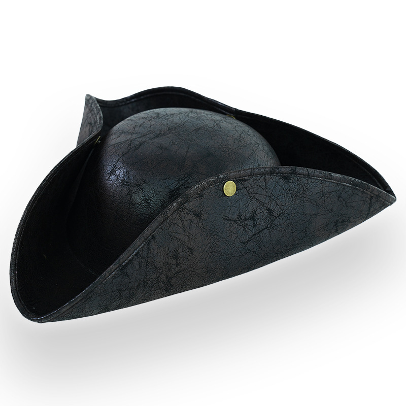 加勒比海盗帽子裂纹万圣节舞台表演仿皮革杰克船长帽三角帽跨境