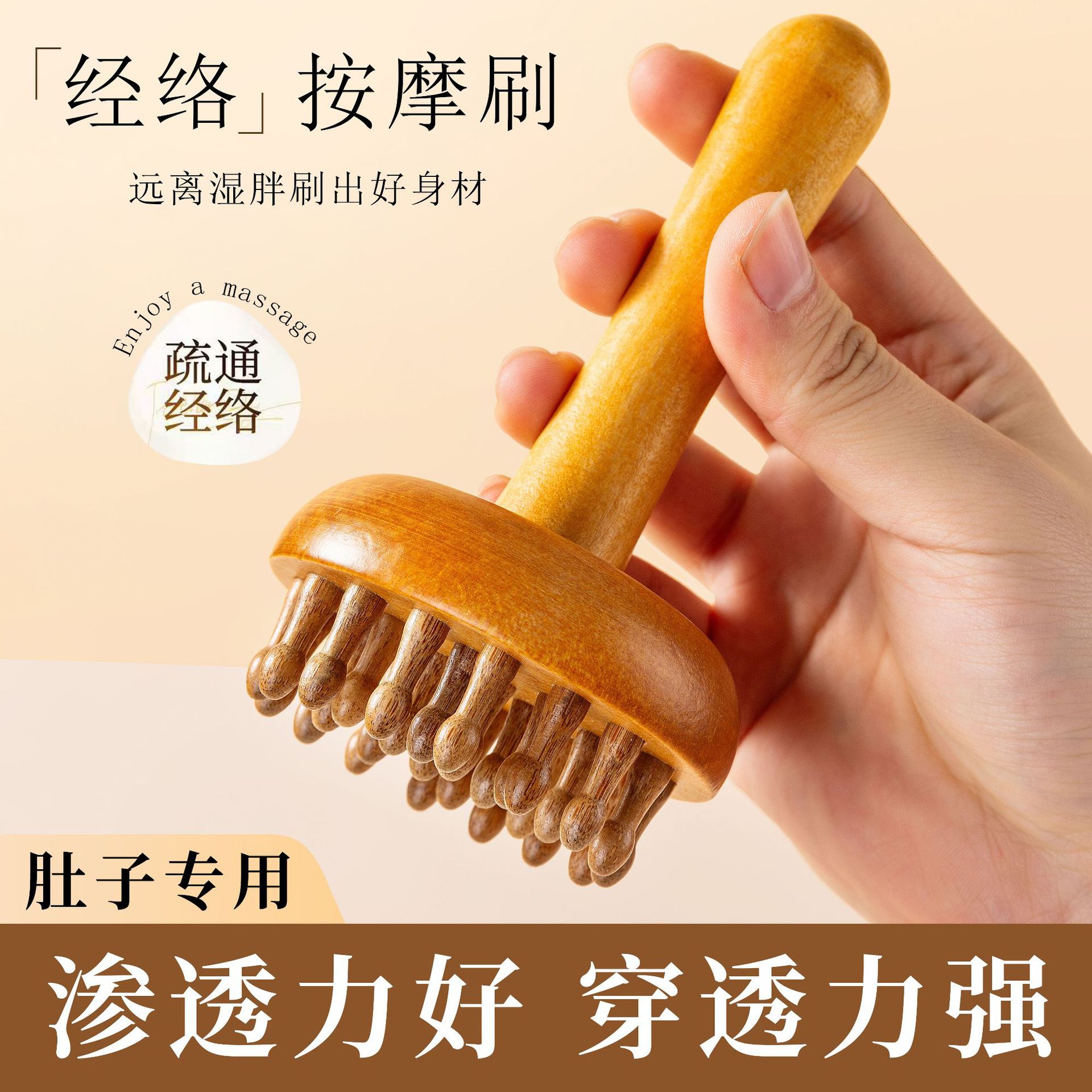1个擎天柱【原木色】实木齿+精油+穴位图