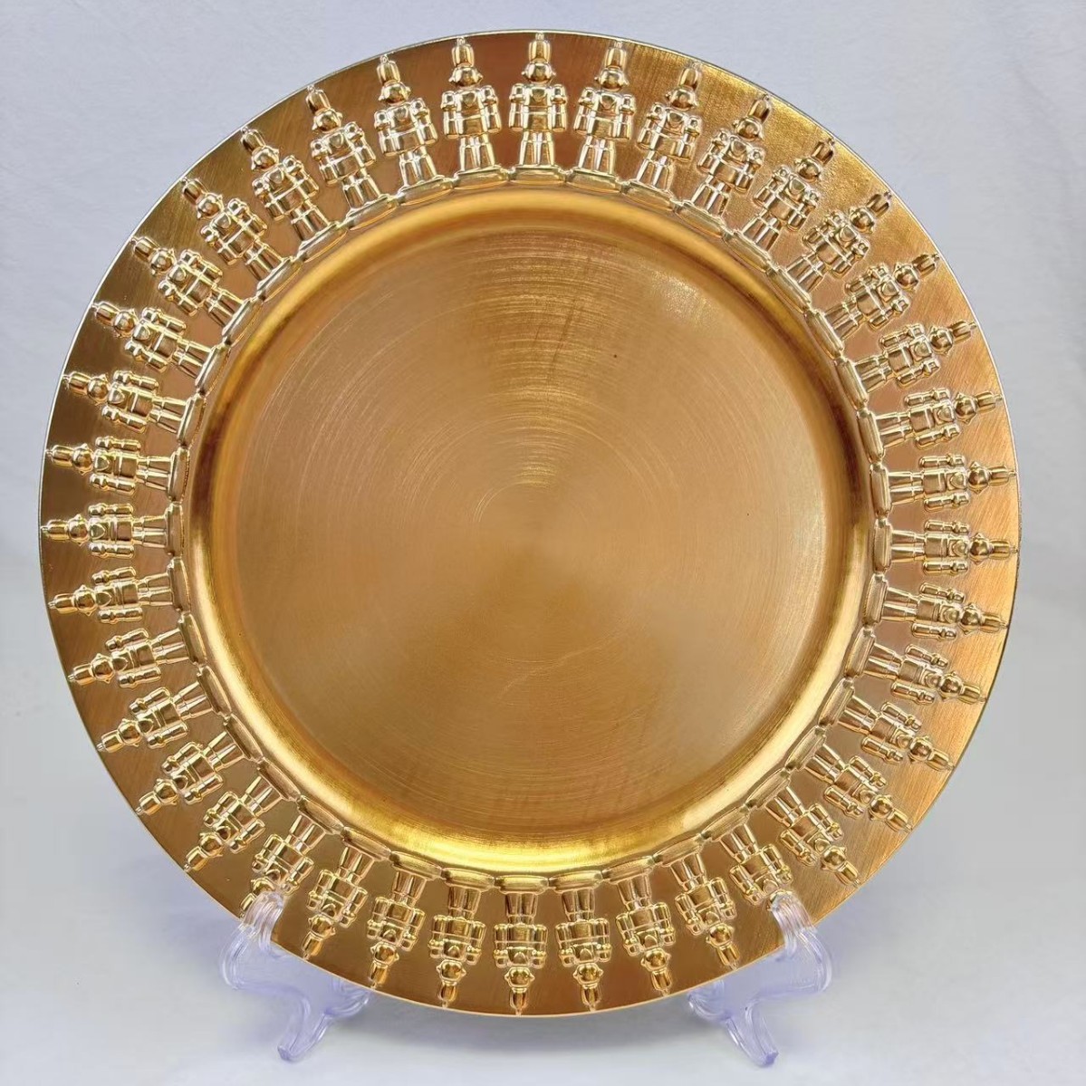 圣诞盘子金色电镀盘中东风格圆盘塑料盘外贸婚礼派对工艺装饰PP盘
