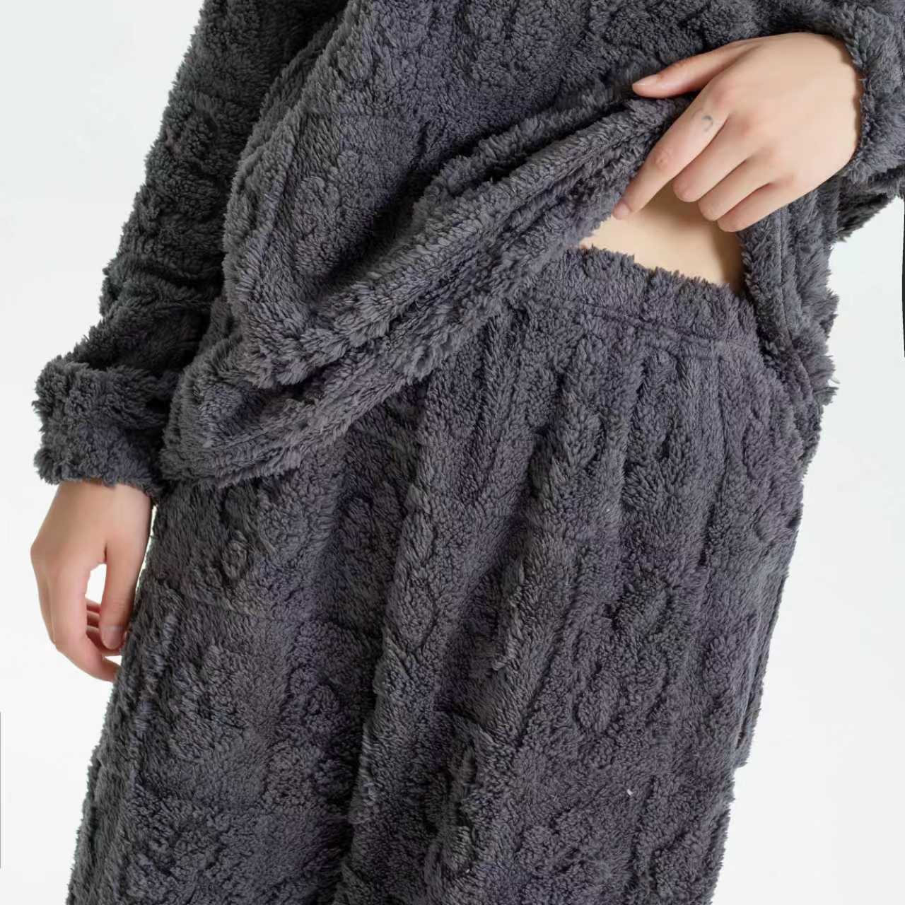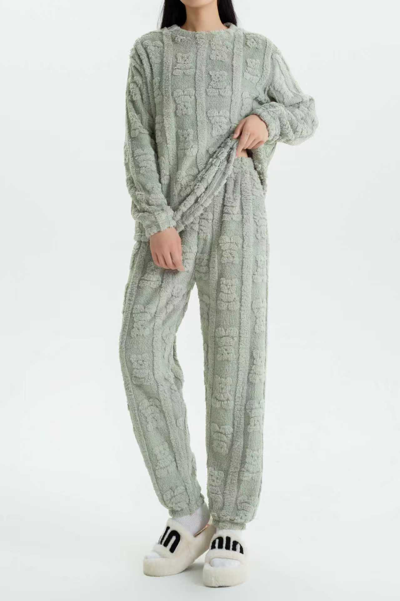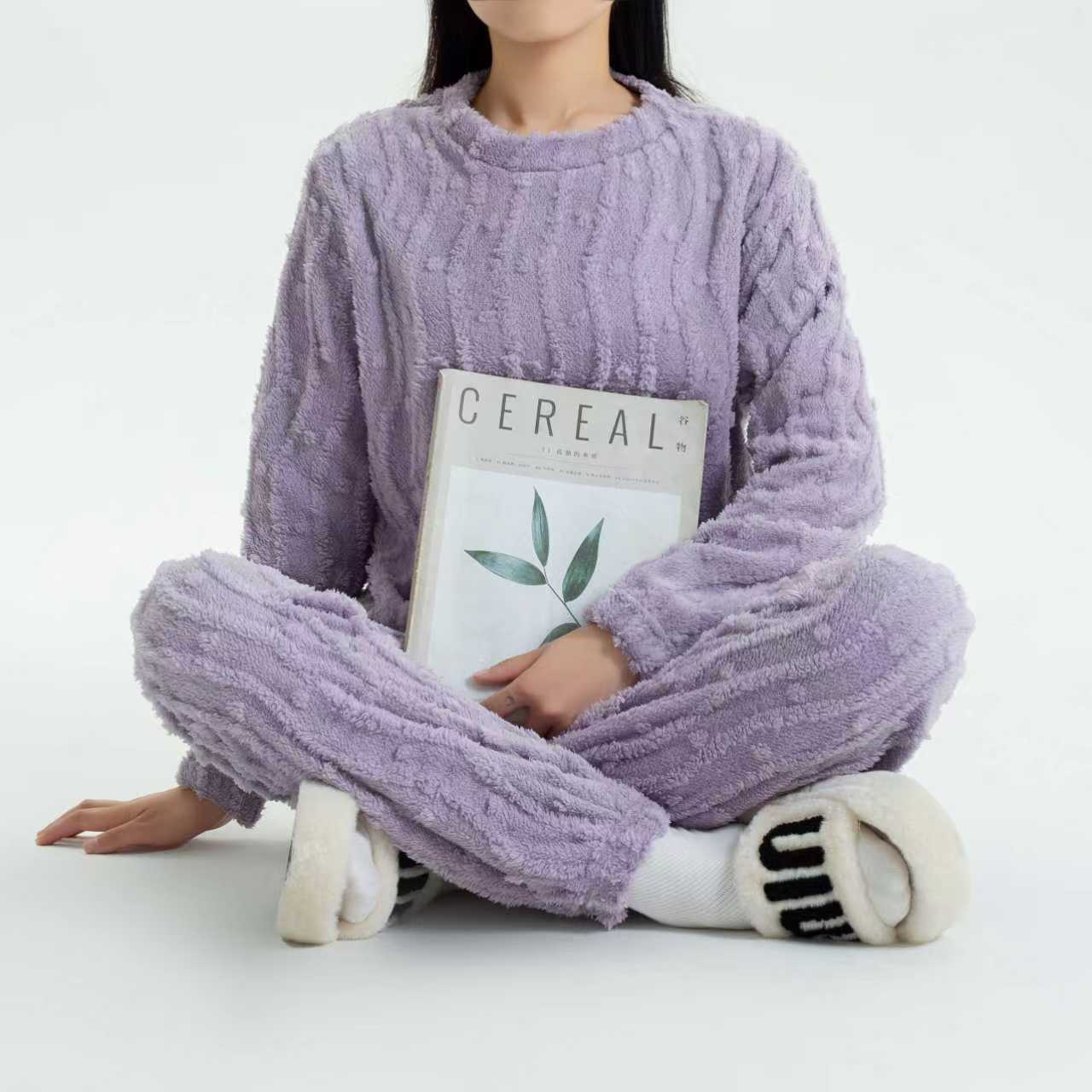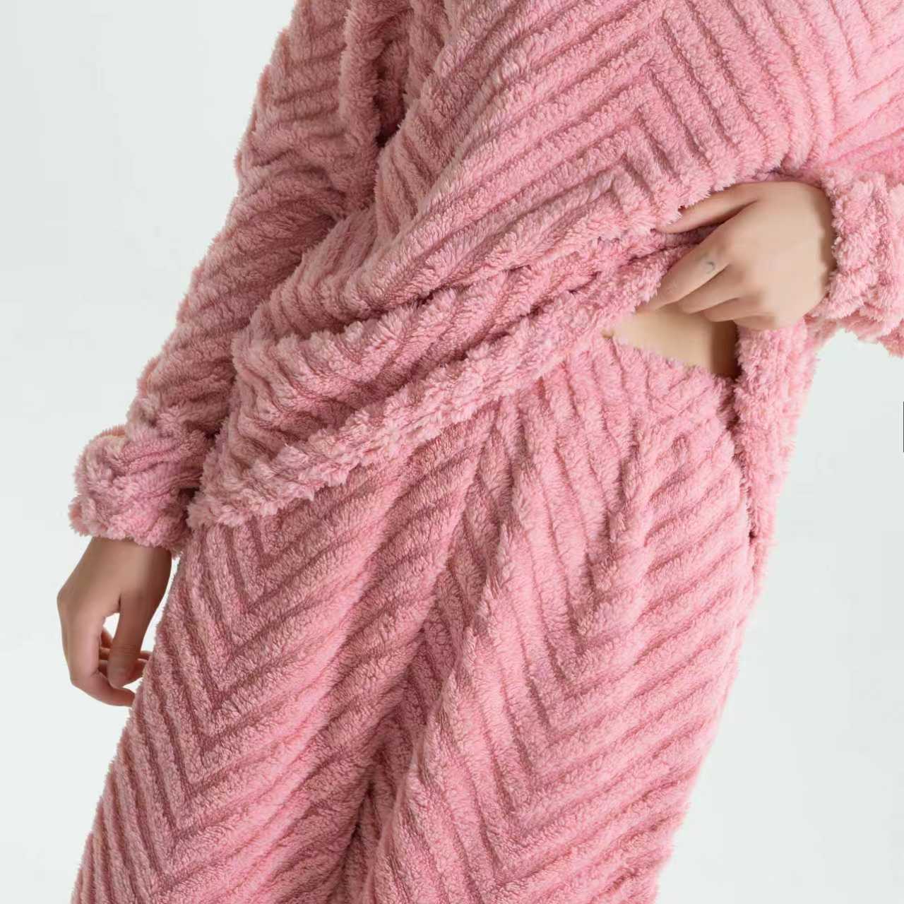 定制花型尺码男女同款冬季保暖纯色提花家居服可外穿慵懒保暖舒适