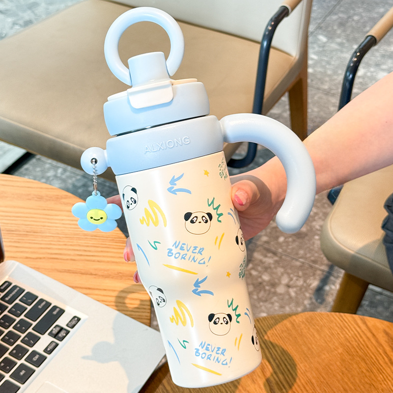 新款巨无霸316不锈钢保温杯便携提环冰霸杯茶水分离可爱吸管水杯