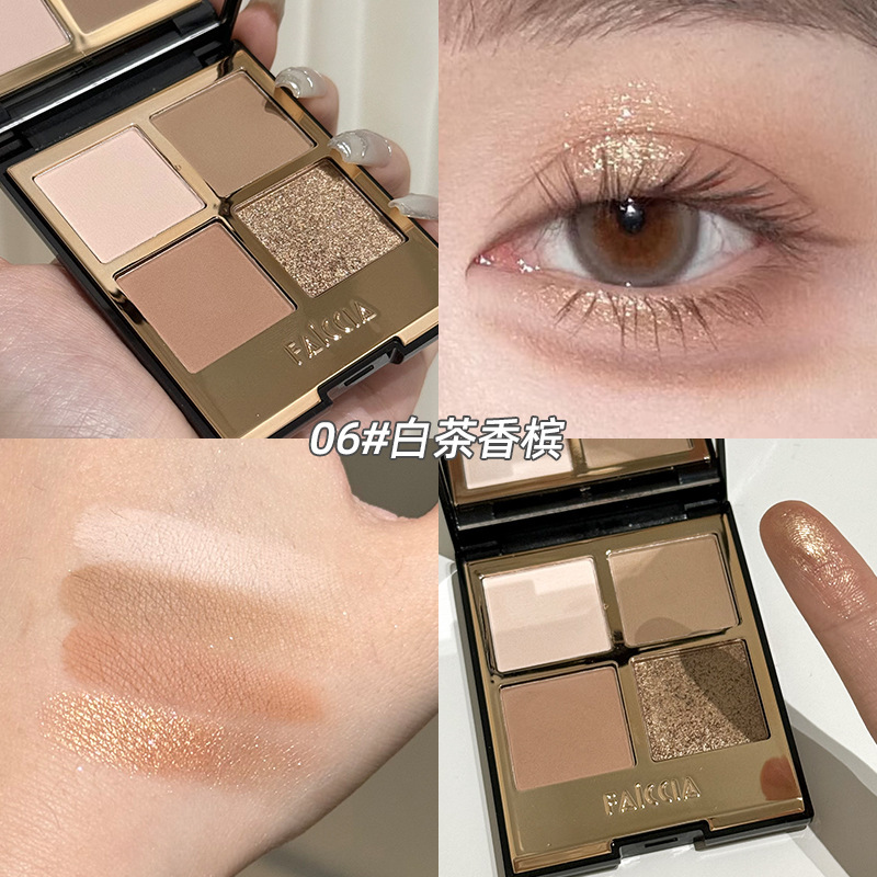 FAICCIA 莫吉托四色眼影爆闪珠光粉棕大地色系烟熏哑光提亮眼影盘
