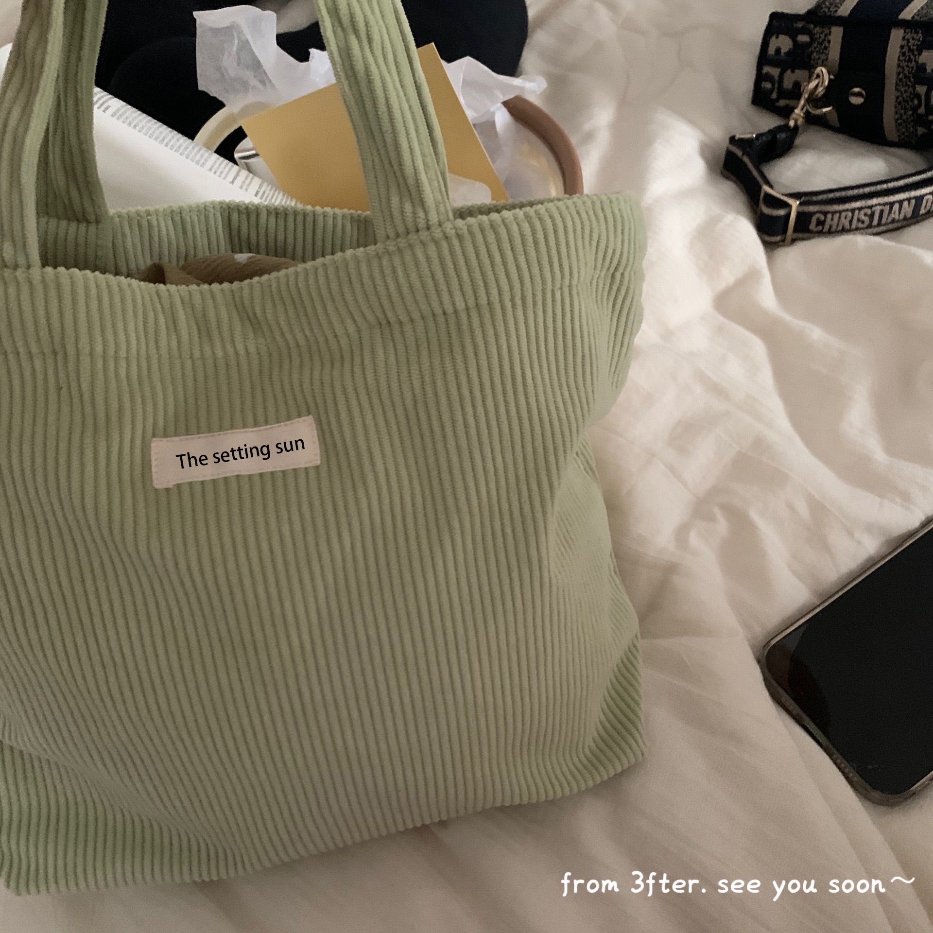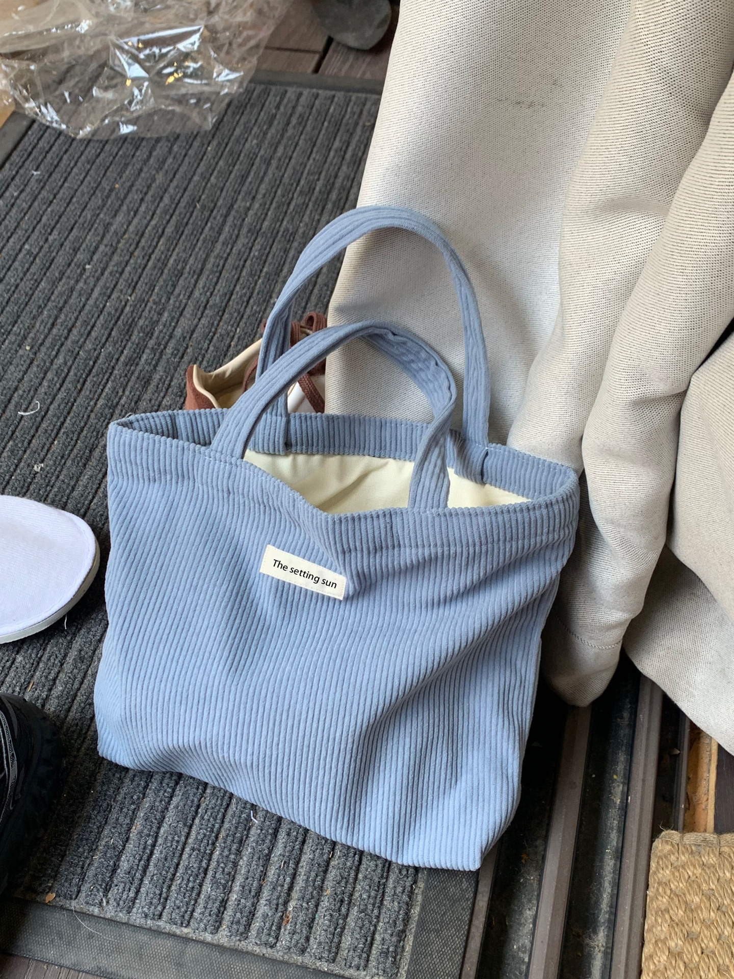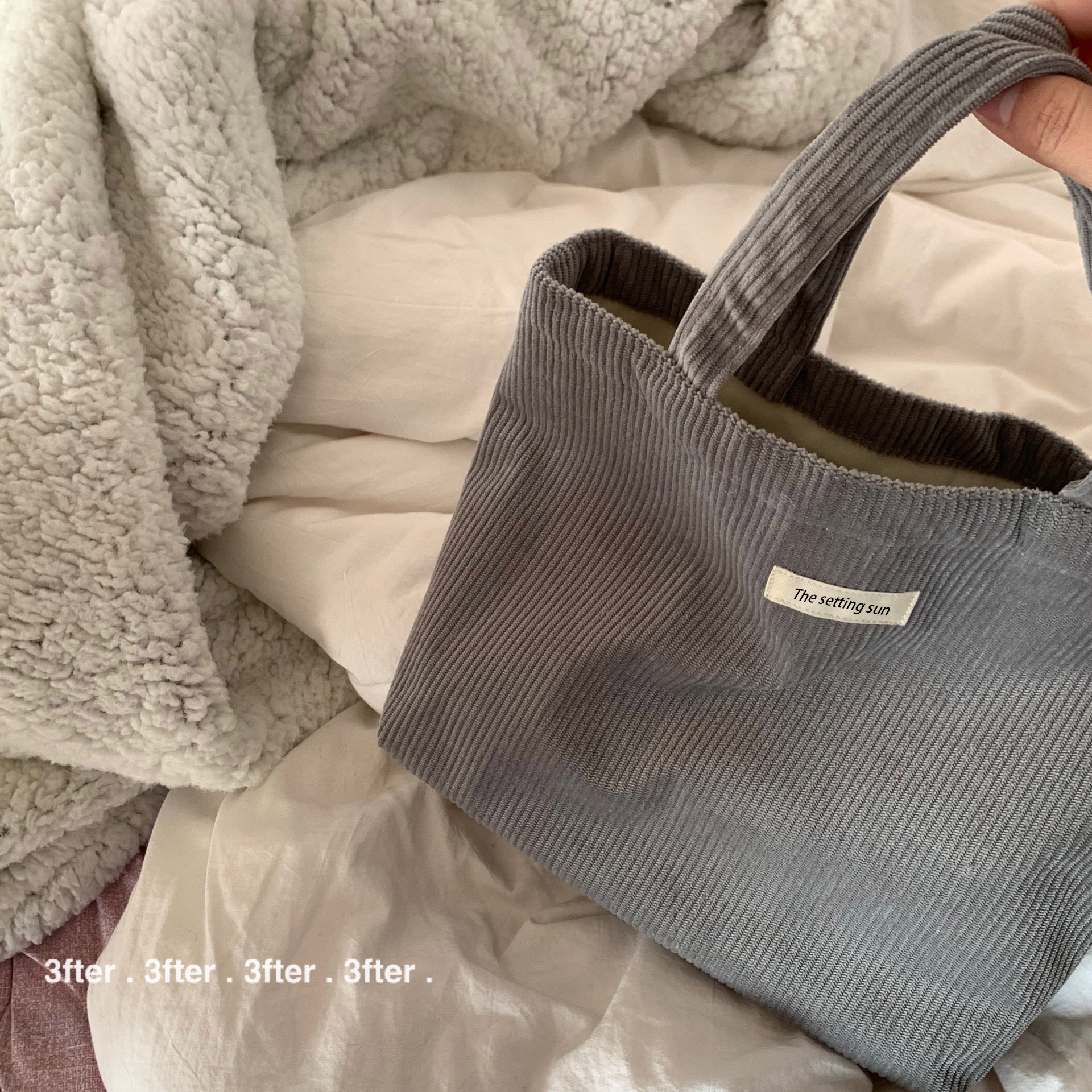 日系淡灰色灯芯绒纯色手提帆布包韩系学院手拎布袋上班便当包