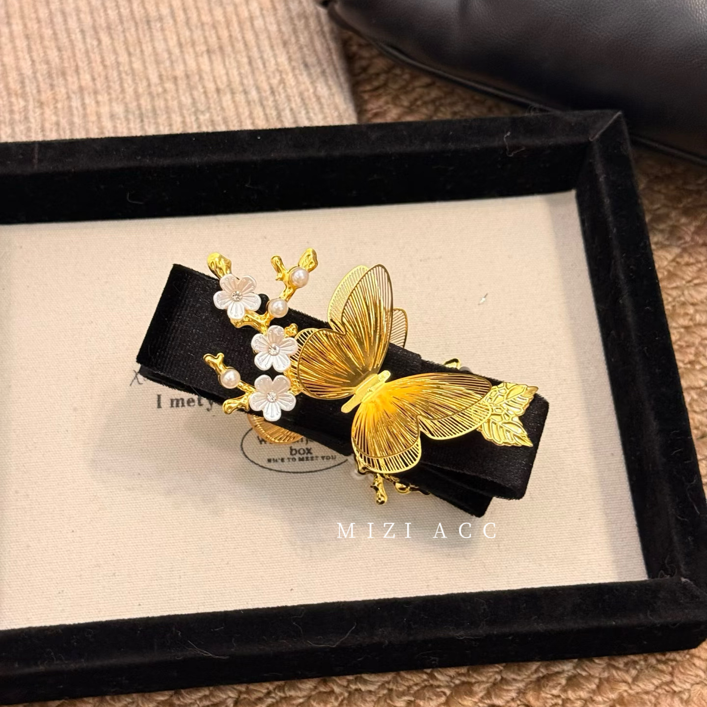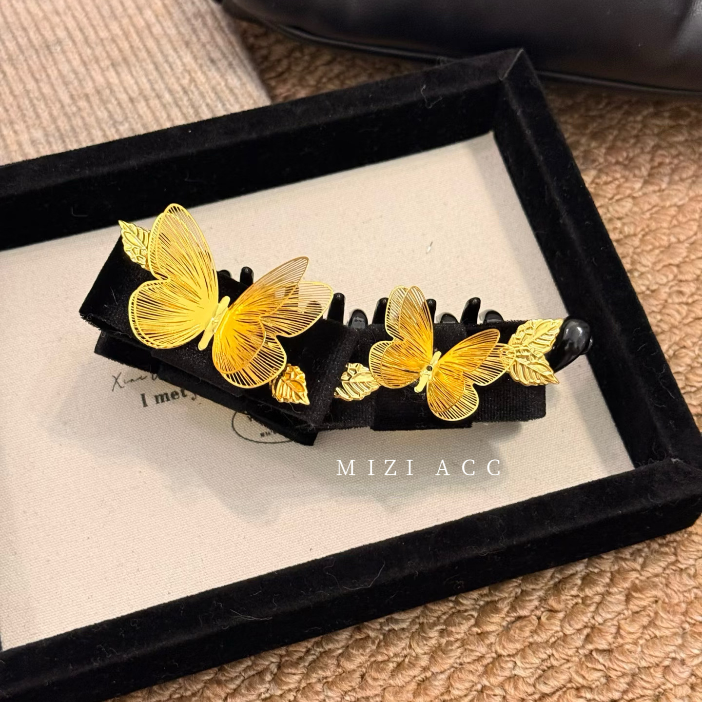 黑金蝶语中式镂空蝴蝶香蕉夹丝绒双层优雅头饰旗袍汉服发饰