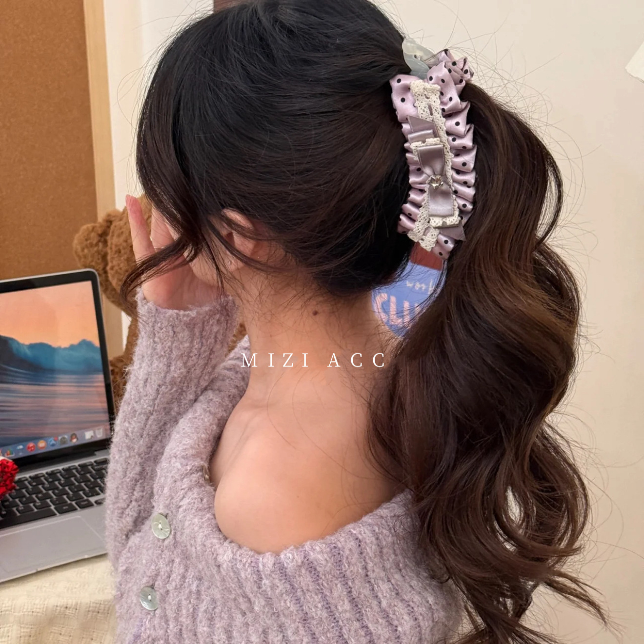 法式洛丽塔小众甜美可爱萝莉百搭蕾丝发饰蕾丝蝴蝶结温柔香蕉夹
