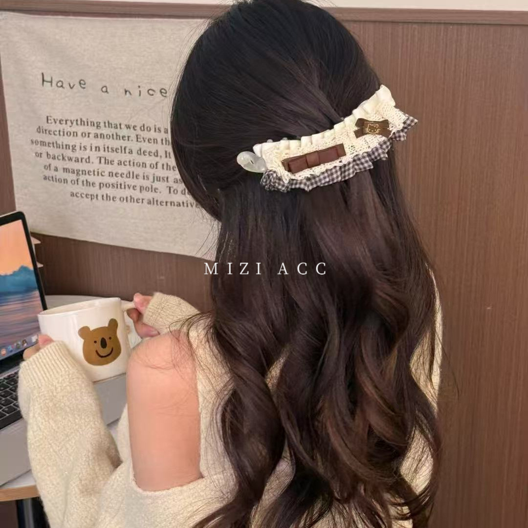 甜美少女风奶油蕾丝蝴蝶结香蕉夹格纹精致香蕉夹夹发饰新款百搭发