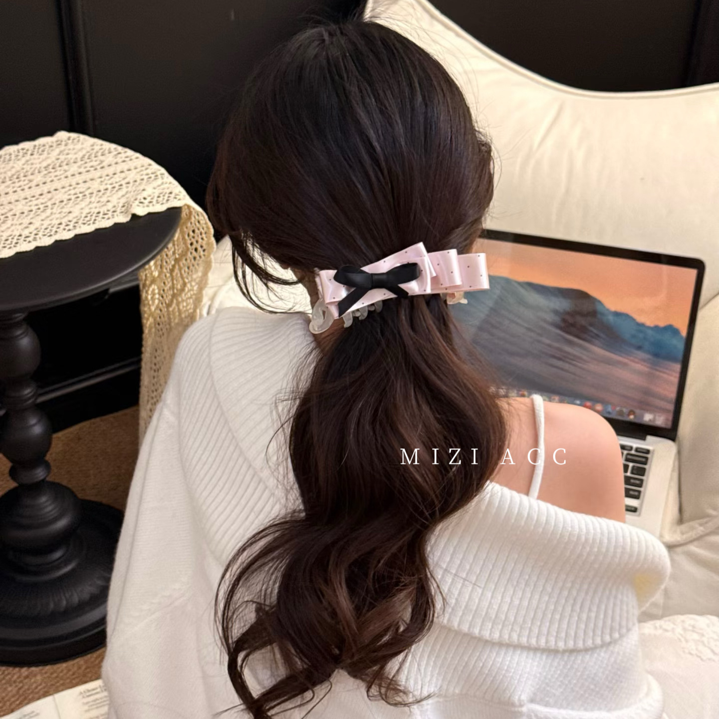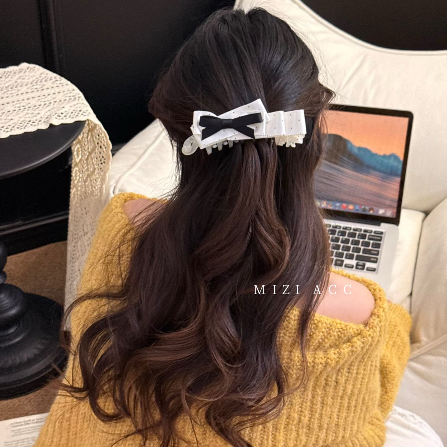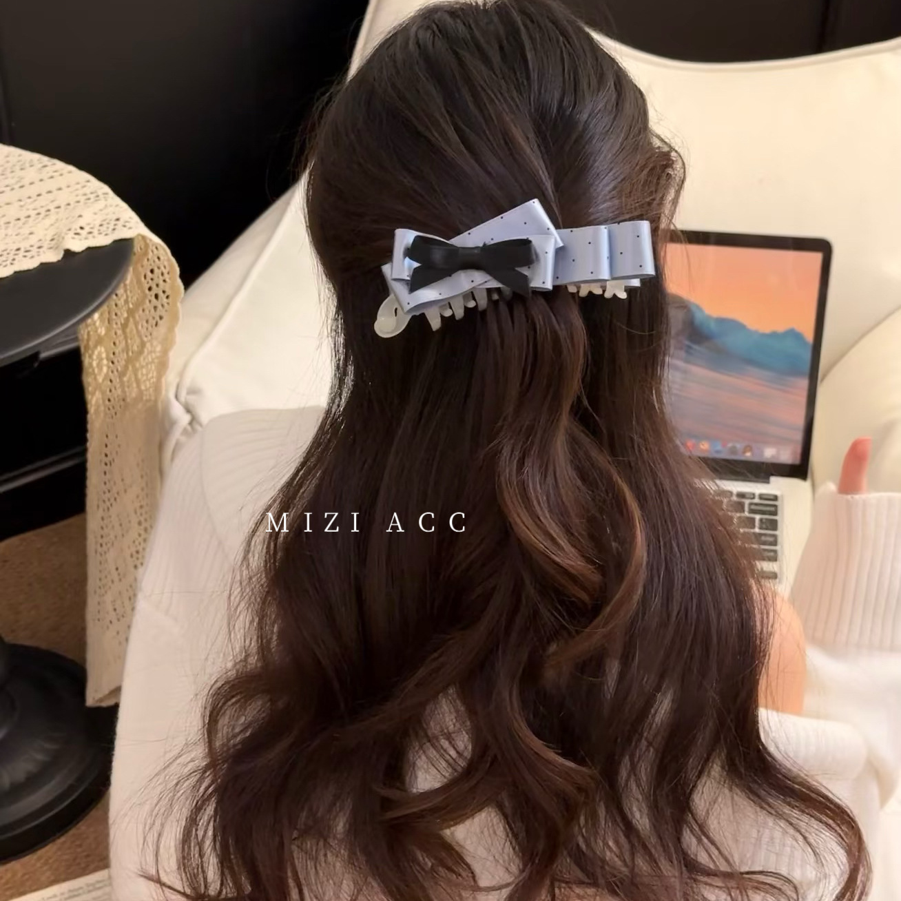 假日圆舞曲波点蝴蝶结后脑勺发卡发抓夹复古鲨鱼夹森系仙气半扎