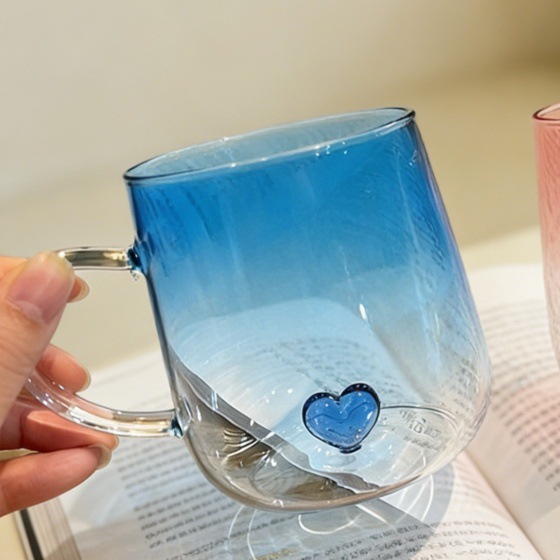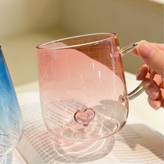 情侣杯高颜值玻璃杯透明渐变创意爱心高硼硅玻璃带把手爱心喝水杯