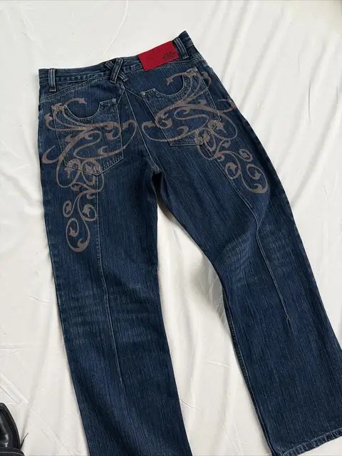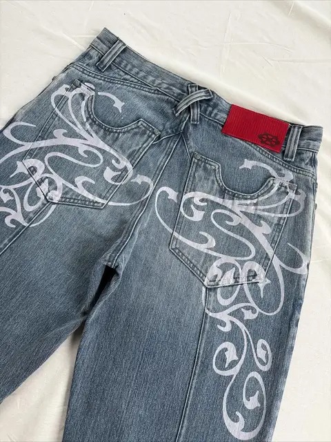 欧美跨境亚马逊外贸印花牛仔裤男水洗大码宽松低腰直筒牛仔长裤男