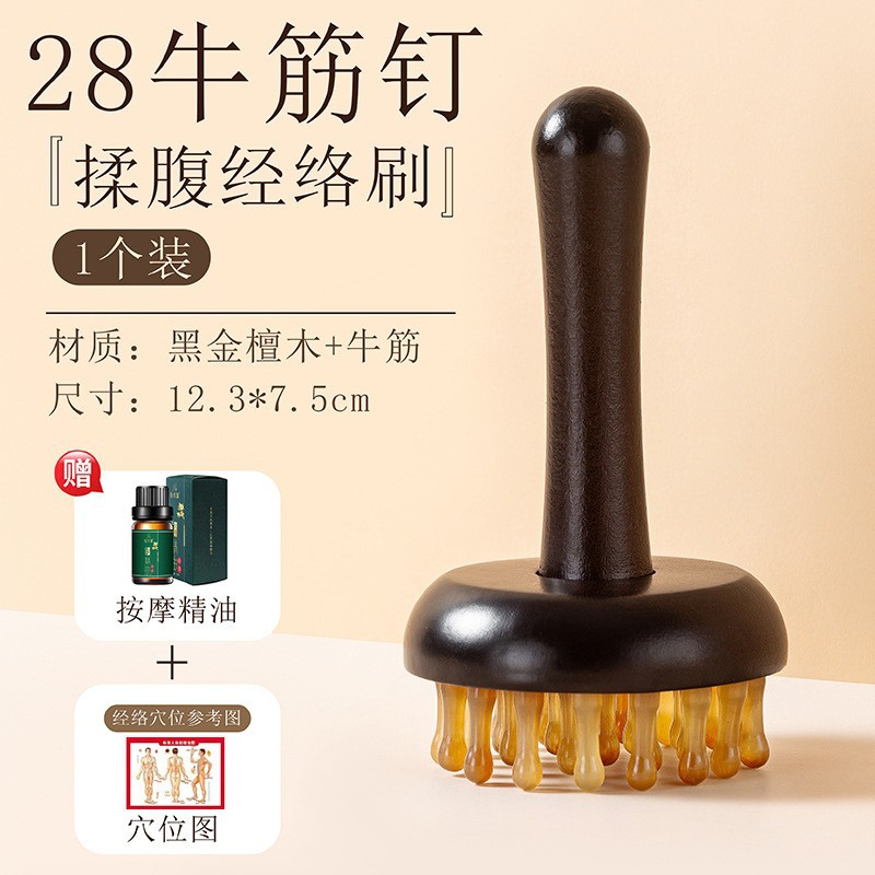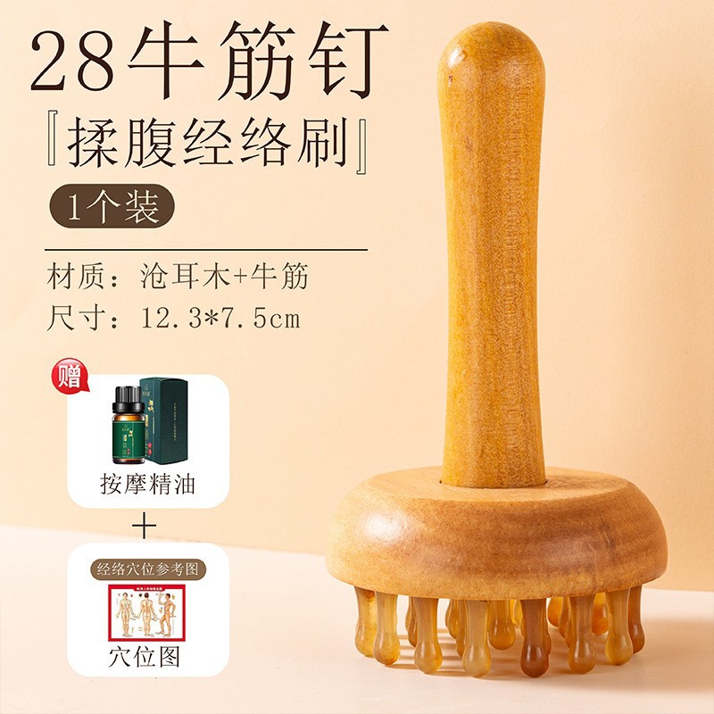 【原木款】带脉经络刷-28牛筋齿+穴位图+精油